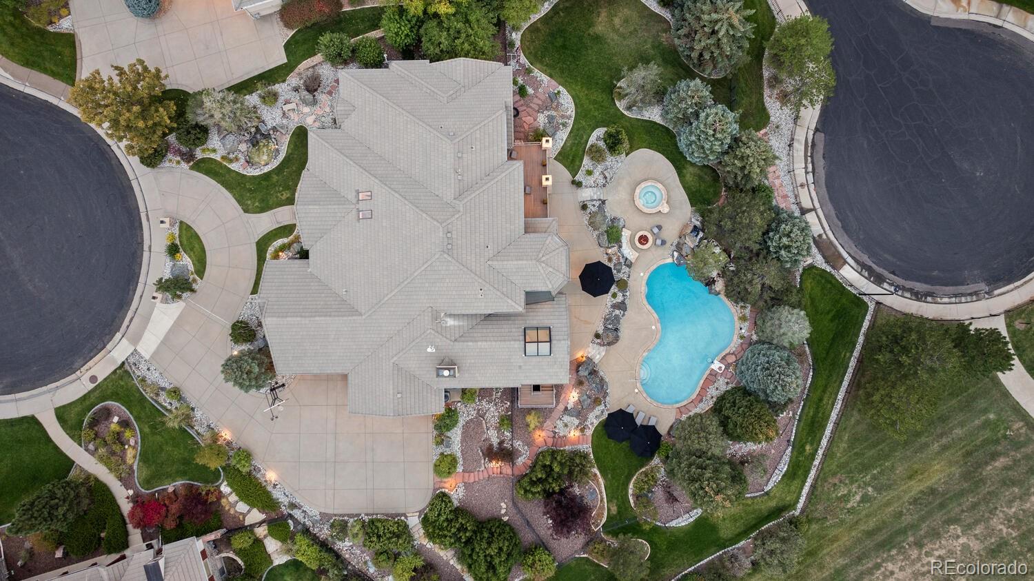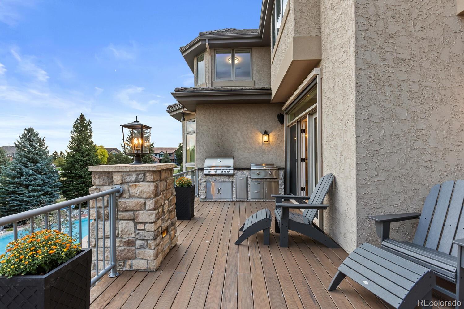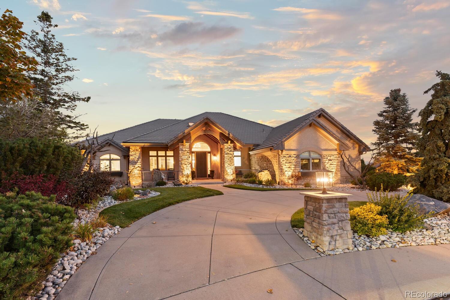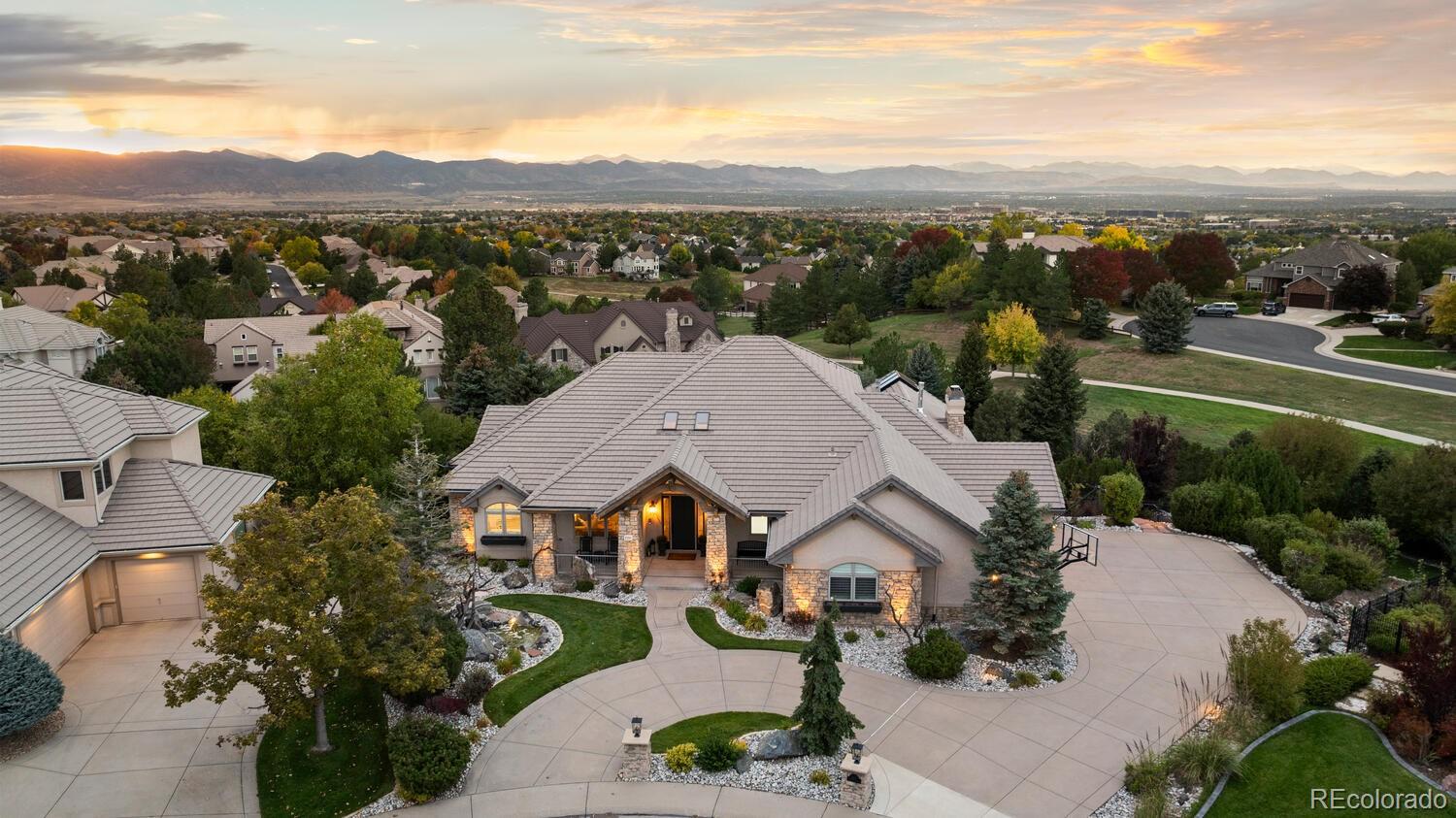 Experience Colorado luxury at its finest in this beautifully remodeled, custom-built estate in one of Highlands Ranch's most prestigious gated communities, The Highwoods. Situated on a meticulously landscaped 0.72-acre lot, this exceptional home offers breathtaking mountain views, resort-style outdoor living, and a floorplan blending timeless elegance with everyday comfort. The backyard is an entertainer's dream with a sparkling pool, relaxing spa, built-in fire pit, and panoramic mountain views. A large grassy area below the pool provides extra space for kids and dogs to play, making this outdoor retreat both beautiful and practical. Inside, handcrafted hardwood floors and architectural details shine throughout. The stunning kitchen features a large center island, custom white cabinetry, quartz countertops, Wolf double ovens, a 6-burner Viking gas cooktop, and built-in Sub-Zero refrigerator. It opens to a spacious family room with a cozy fireplace--perfect for entertaining or quiet nights. The main-floor primary suite offers a two-sided gas fireplace, sitting area, and dual custom walk-in closets. The luxuriously remodeled ensuite bath includes a soaking tub, heated tile floors, and a walk-in steam shower. Expansive decks one enclosed in custom glass, and one with built-in grill are ideal for enjoying Colorado's stunning sunsets. Upstairs are three generous bedroom suites, each with private baths and stunning mountain views. The finished walk-out basement expands living space dramatically, featuring a large guest bedroom, full bath, and home gym. The open-concept entertaining area includes a stylish wet bar and large gaming/family room that opens to outdoor living spaces--ideal for gatherings, game nights, or multi-generational living. Every inch of this home is updated with high-end finishes that complement its timeless design. From views and layout to luxurious outdoor features, this home epitomizes Colorado luxury living.