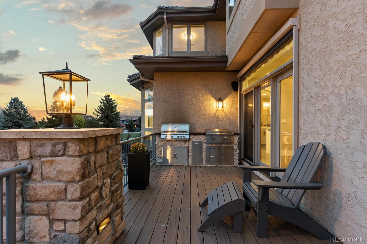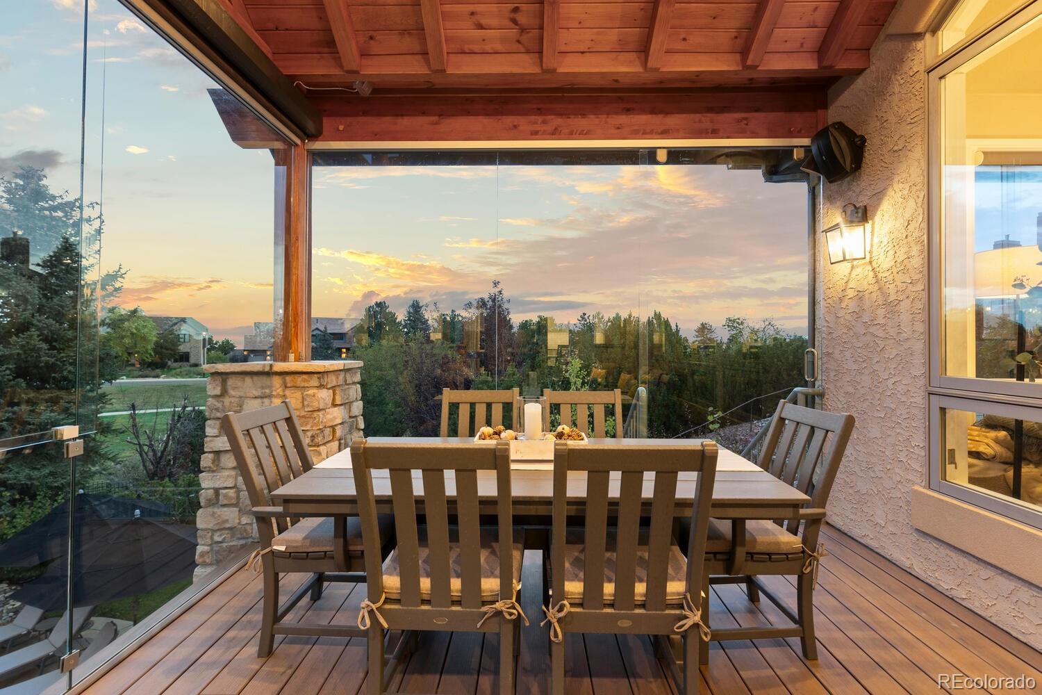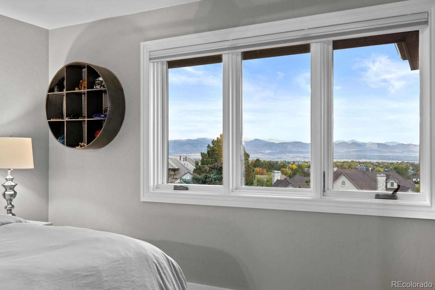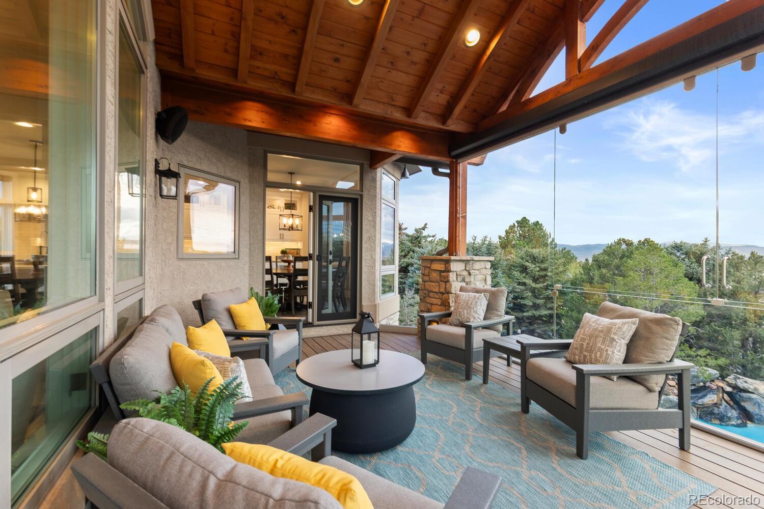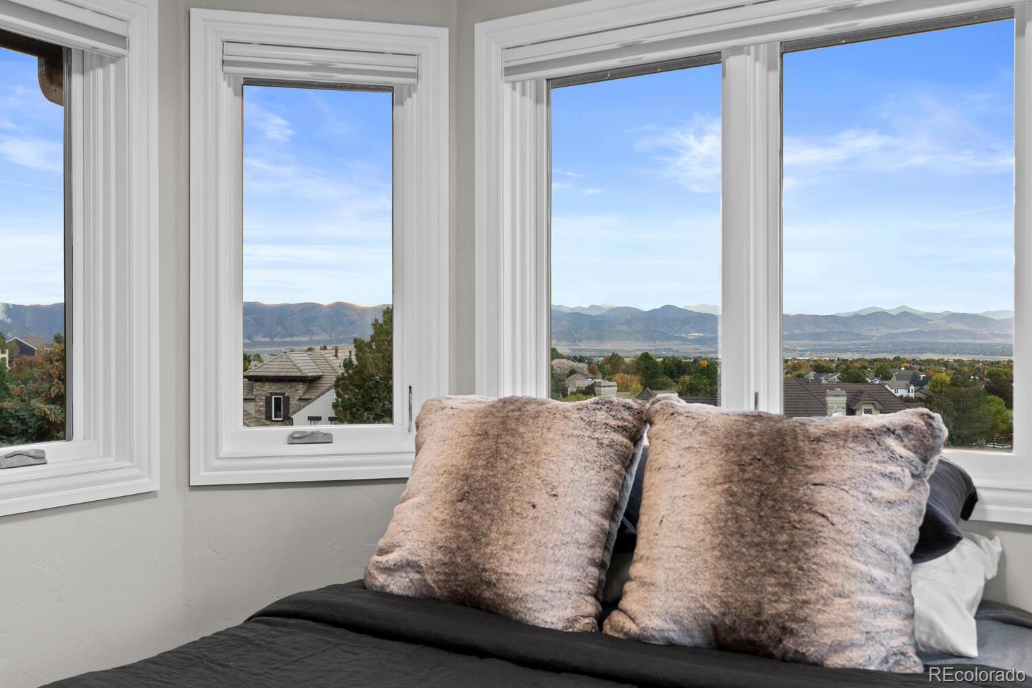 Experience Colorado luxury at its finest in this beautifully remodeled, custom-built estate in one of Highlands Ranch's most prestigious gated communities, The Highwoods. Situated on a meticulously landscaped 0.72-acre lot, this exceptional home offers breathtaking mountain views, resort-style outdoor living, and a floorplan blending timeless elegance with everyday comfort. The backyard is an entertainer's dream with a sparkling pool, relaxing spa, built-in fire pit, and panoramic mountain views. A large grassy area below the pool provides extra space for kids and dogs to play, making this outdoor retreat both beautiful and practical. Inside, handcrafted hardwood floors and architectural details shine throughout. The stunning kitchen features a large center island, custom white cabinetry, quartz countertops, Wolf double ovens, a 6-burner Viking gas cooktop, and built-in Sub-Zero refrigerator. It opens to a spacious family room with a cozy fireplace--perfect for entertaining or quiet nights. The main-floor primary suite offers a two-sided gas fireplace, sitting area, and dual custom walk-in closets. The luxuriously remodeled ensuite bath includes a soaking tub, heated tile floors, and a walk-in steam shower. Expansive decks one enclosed in custom glass, and one with built-in grill are ideal for enjoying Colorado's stunning sunsets. Upstairs are three generous bedroom suites, each with private baths and stunning mountain views. The finished walk-out basement expands living space dramatically, featuring a large guest bedroom, full bath, and home gym. The open-concept entertaining area includes a stylish wet bar and large gaming/family room that opens to outdoor living spaces--ideal for gatherings, game nights, or multi-generational living. Every inch of this home is updated with high-end finishes that complement its timeless design. From views and layout to luxurious outdoor features, this home epitomizes Colorado luxury living.