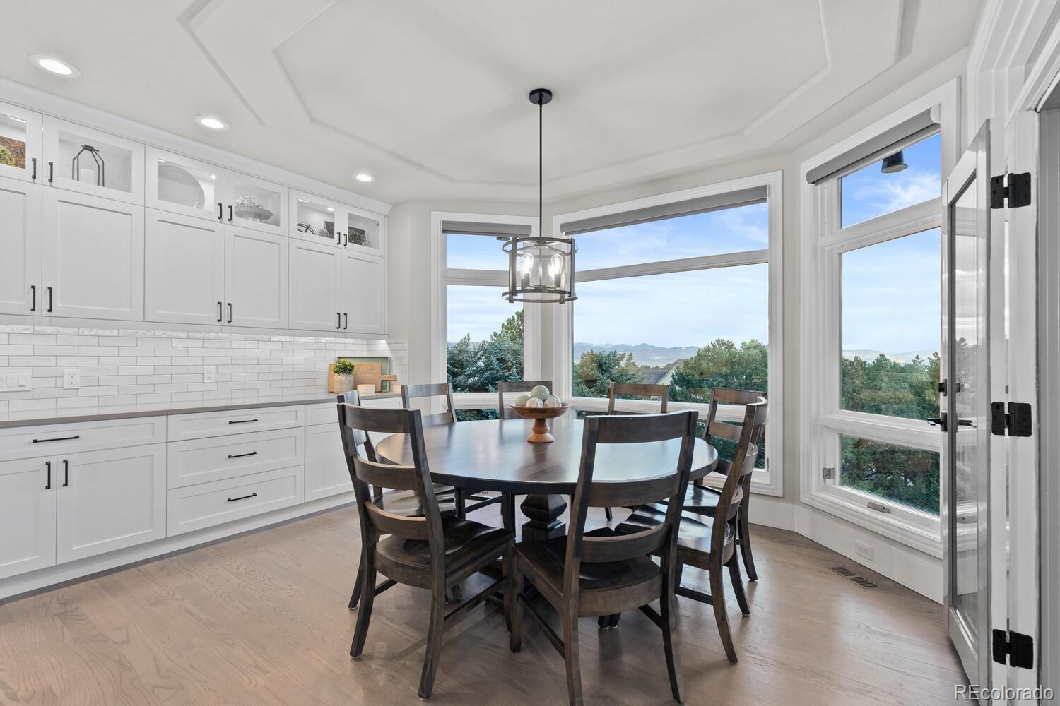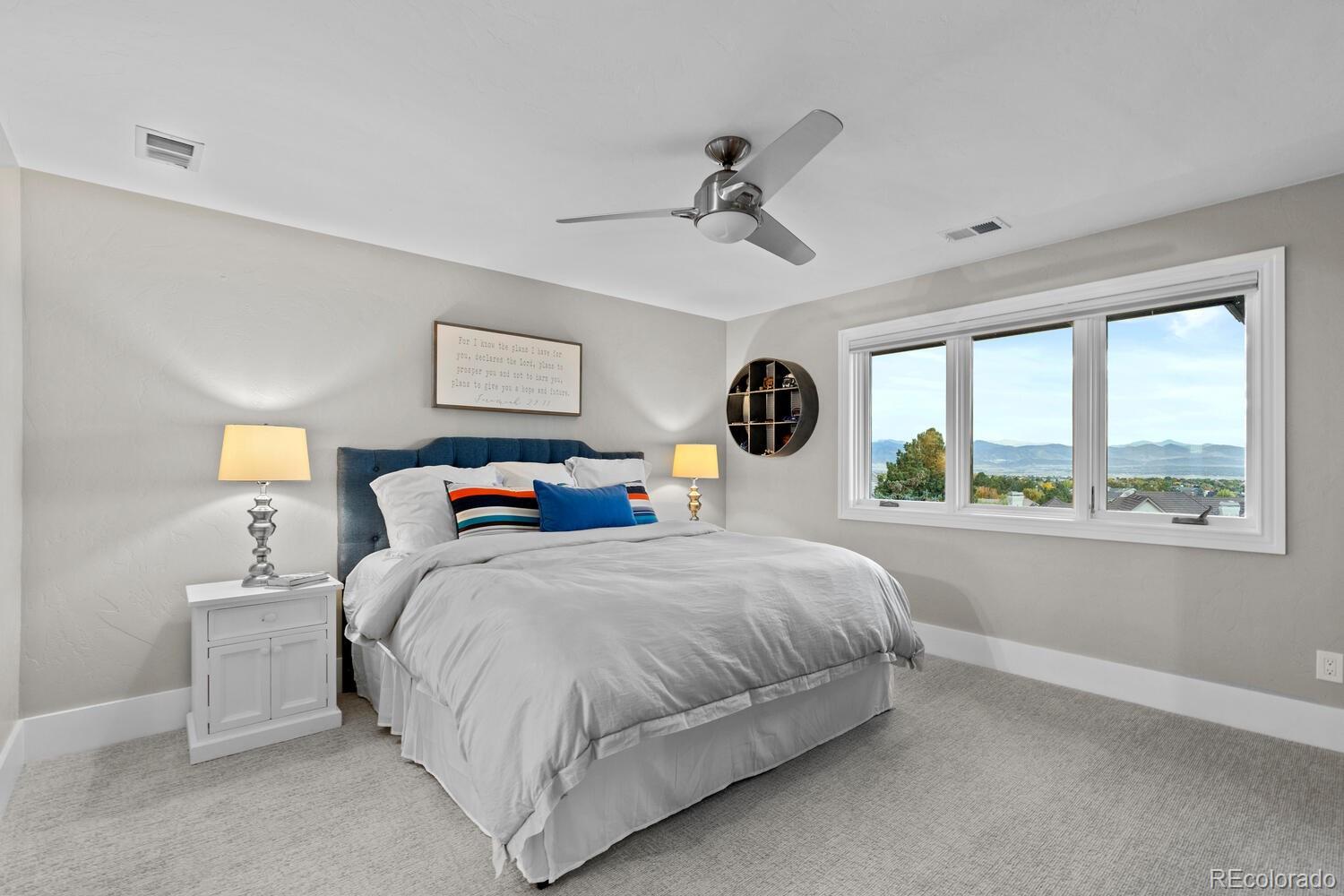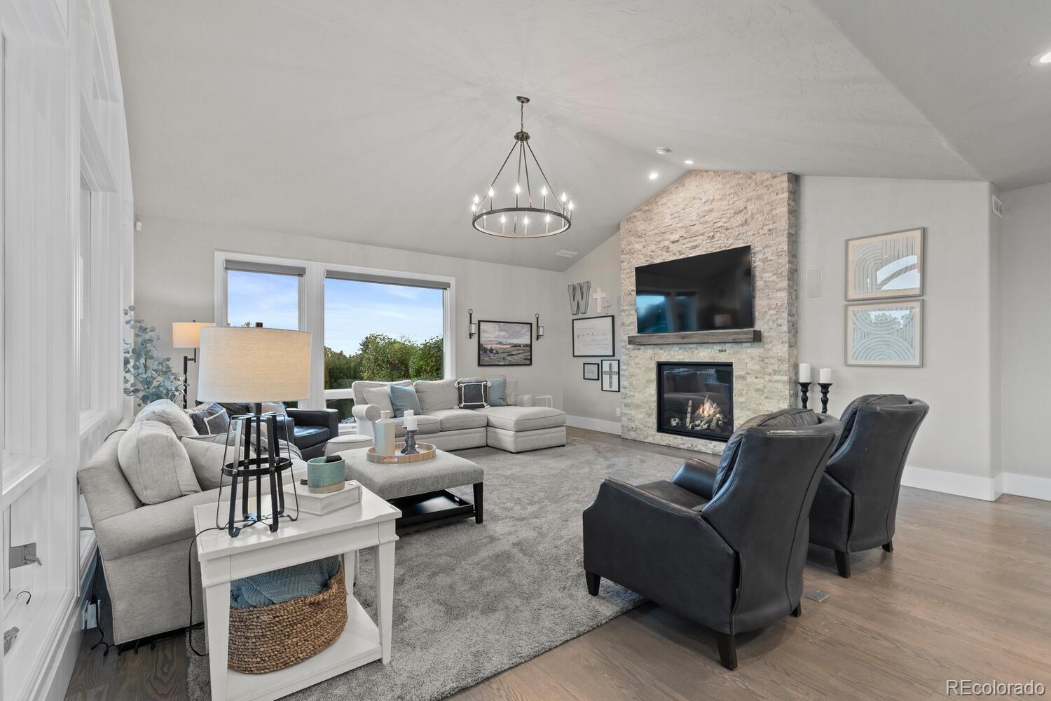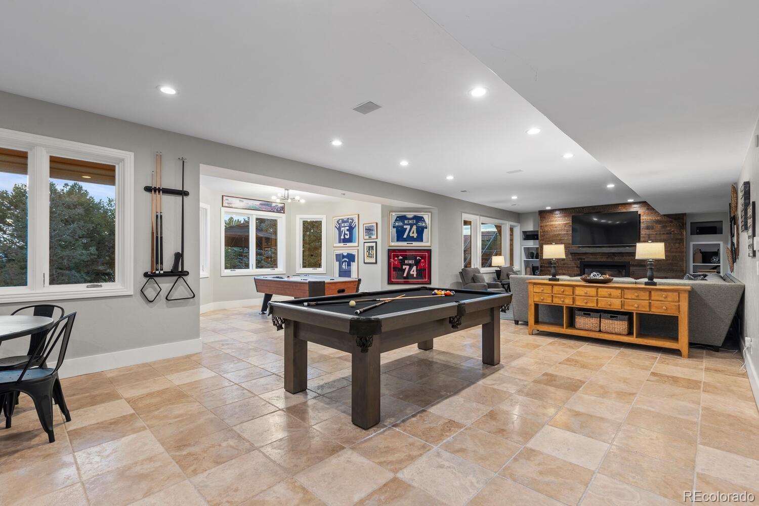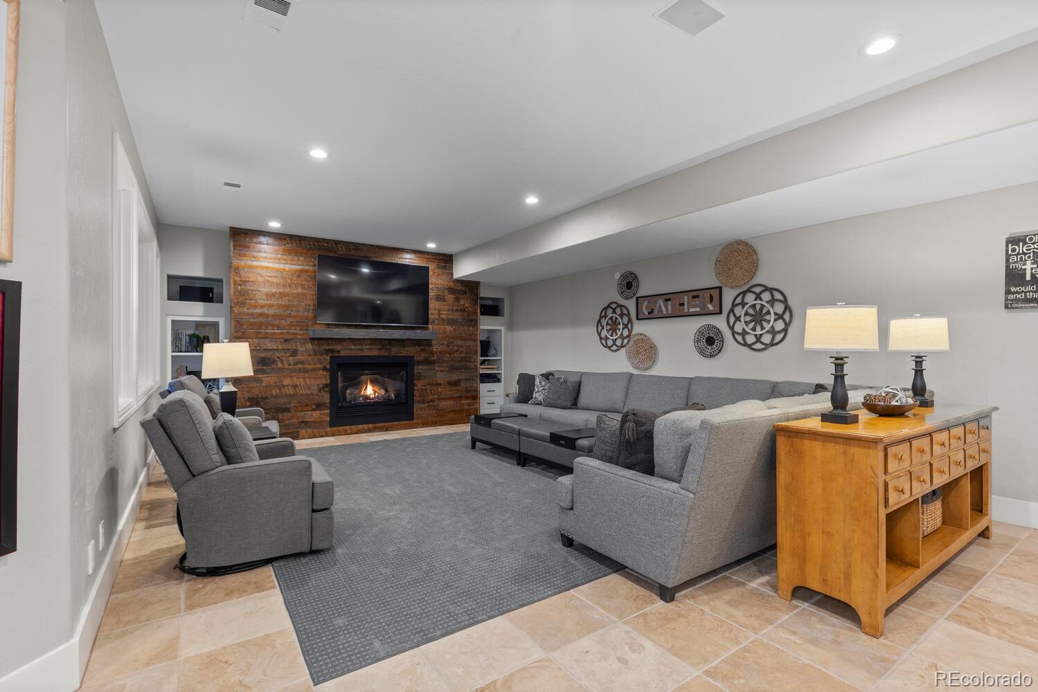 Experience Colorado luxury at its finest in this beautifully remodeled, custom-built estate in one of Highlands Ranch's most prestigious gated communities, The Highwoods. Situated on a meticulously landscaped 0.72-acre lot, this exceptional home offers breathtaking mountain views, resort-style outdoor living, and a floorplan blending timeless elegance with everyday comfort. The backyard is an entertainer's dream with a sparkling pool, relaxing spa, built-in fire pit, and panoramic mountain views. A large grassy area below the pool provides extra space for kids and dogs to play, making this outdoor retreat both beautiful and practical. Inside, handcrafted hardwood floors and architectural details shine throughout. The stunning kitchen features a large center island, custom white cabinetry, quartz countertops, Wolf double ovens, a 6-burner Viking gas cooktop, and built-in Sub-Zero refrigerator. It opens to a spacious family room with a cozy fireplace--perfect for entertaining or quiet nights. The main-floor primary suite offers a two-sided gas fireplace, sitting area, and dual custom walk-in closets. The luxuriously remodeled ensuite bath includes a soaking tub, heated tile floors, and a walk-in steam shower. Expansive decks one enclosed in custom glass, and one with built-in grill are ideal for enjoying Colorado's stunning sunsets. Upstairs are three generous bedroom suites, each with private baths and stunning mountain views. The finished walk-out basement expands living space dramatically, featuring a large guest bedroom, full bath, and home gym. The open-concept entertaining area includes a stylish wet bar and large gaming/family room that opens to outdoor living spaces--ideal for gatherings, game nights, or multi-generational living. Every inch of this home is updated with high-end finishes that complement its timeless design. From views and layout to luxurious outdoor features, this home epitomizes Colorado luxury living.