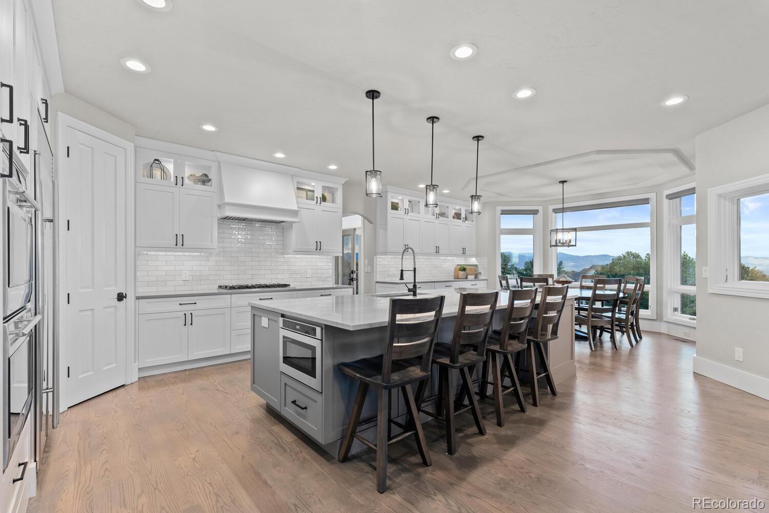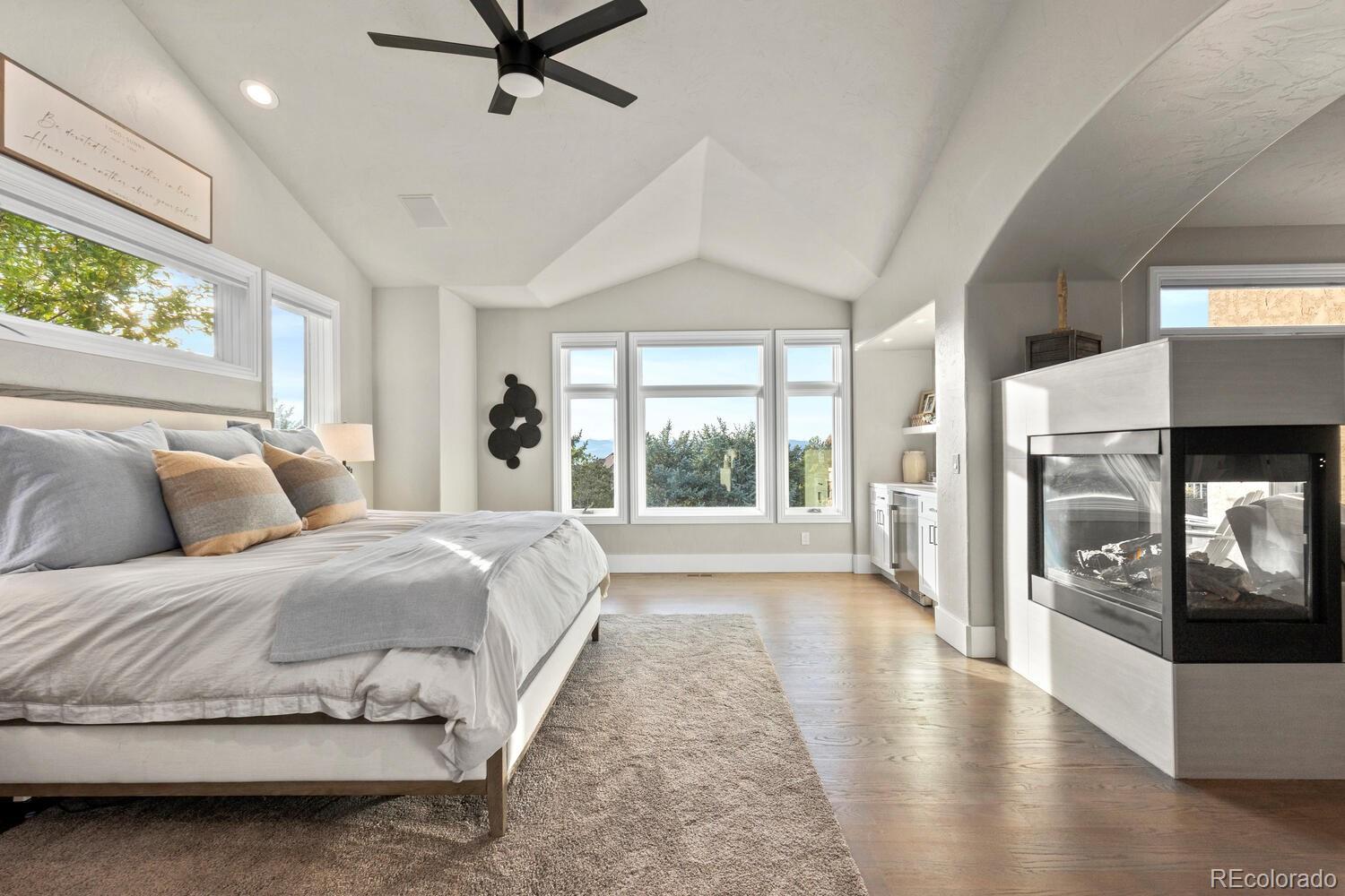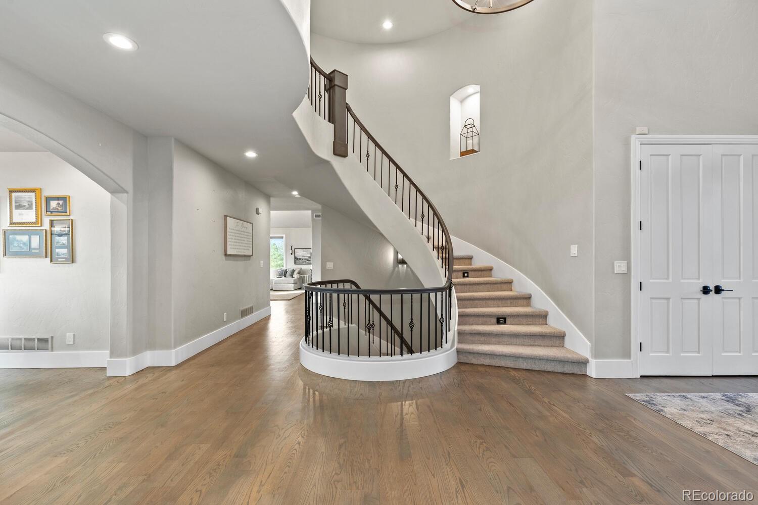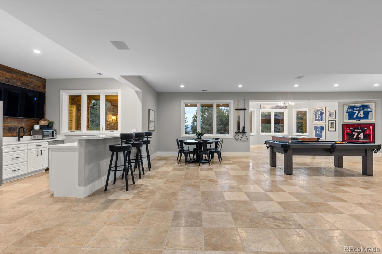 Experience Colorado luxury at its finest in this beautifully remodeled, custom-built estate in one of Highlands Ranch's most prestigious gated communities, The Highwoods. Situated on a meticulously landscaped 0.72-acre lot, this exceptional home offers breathtaking mountain views, resort-style outdoor living, and a floorplan blending timeless elegance with everyday comfort. The backyard is an entertainer's dream with a sparkling pool, relaxing spa, built-in fire pit, and panoramic mountain views. A large grassy area below the pool provides extra space for kids and dogs to play, making this outdoor retreat both beautiful and practical. Inside, handcrafted hardwood floors and architectural details shine throughout. The stunning kitchen features a large center island, custom white cabinetry, quartz countertops, Wolf double ovens, a 6-burner Viking gas cooktop, and built-in Sub-Zero refrigerator. It opens to a spacious family room with a cozy fireplace--perfect for entertaining or quiet nights. The main-floor primary suite offers a two-sided gas fireplace, sitting area, and dual custom walk-in closets. The luxuriously remodeled ensuite bath includes a soaking tub, heated tile floors, and a walk-in steam shower. Expansive decks one enclosed in custom glass, and one with built-in grill are ideal for enjoying Colorado's stunning sunsets. Upstairs are three generous bedroom suites, each with private baths and stunning mountain views. The finished walk-out basement expands living space dramatically, featuring a large guest bedroom, full bath, and home gym. The open-concept entertaining area includes a stylish wet bar and large gaming/family room that opens to outdoor living spaces--ideal for gatherings, game nights, or multi-generational living. Every inch of this home is updated with high-end finishes that complement its timeless design. From views and layout to luxurious outdoor features, this home epitomizes Colorado luxury living.