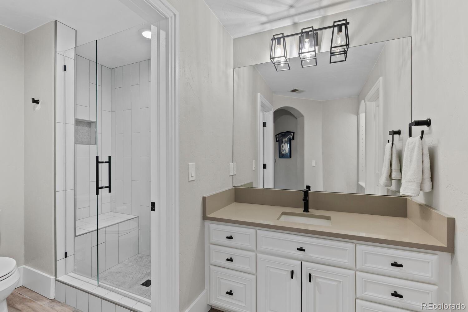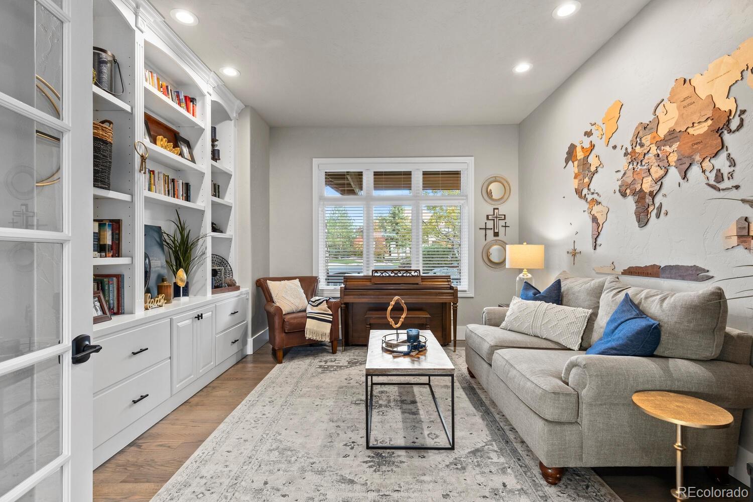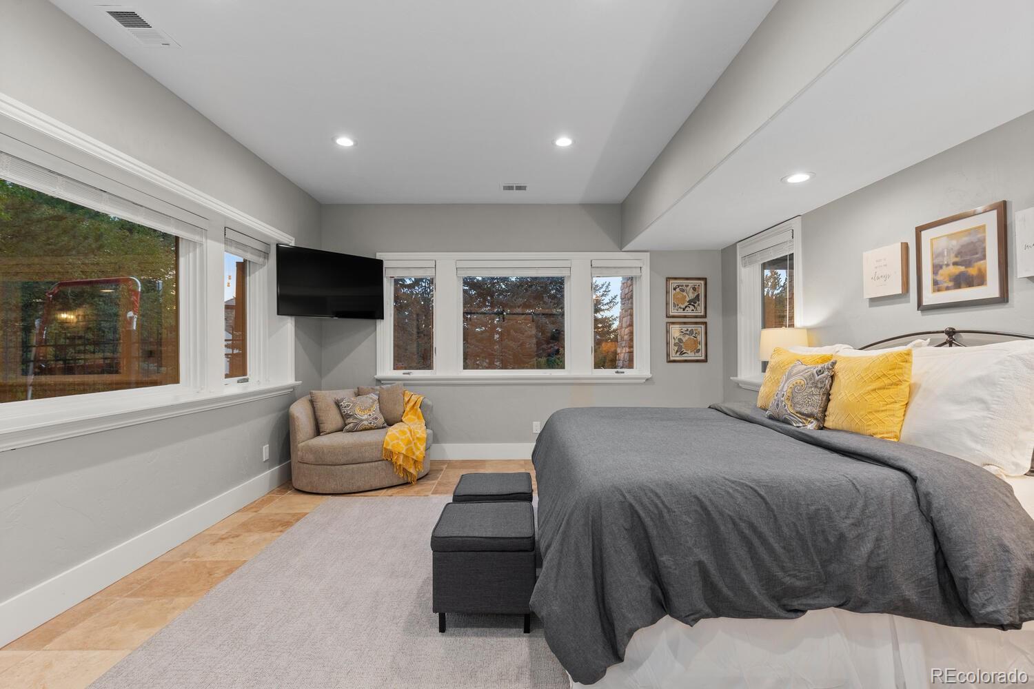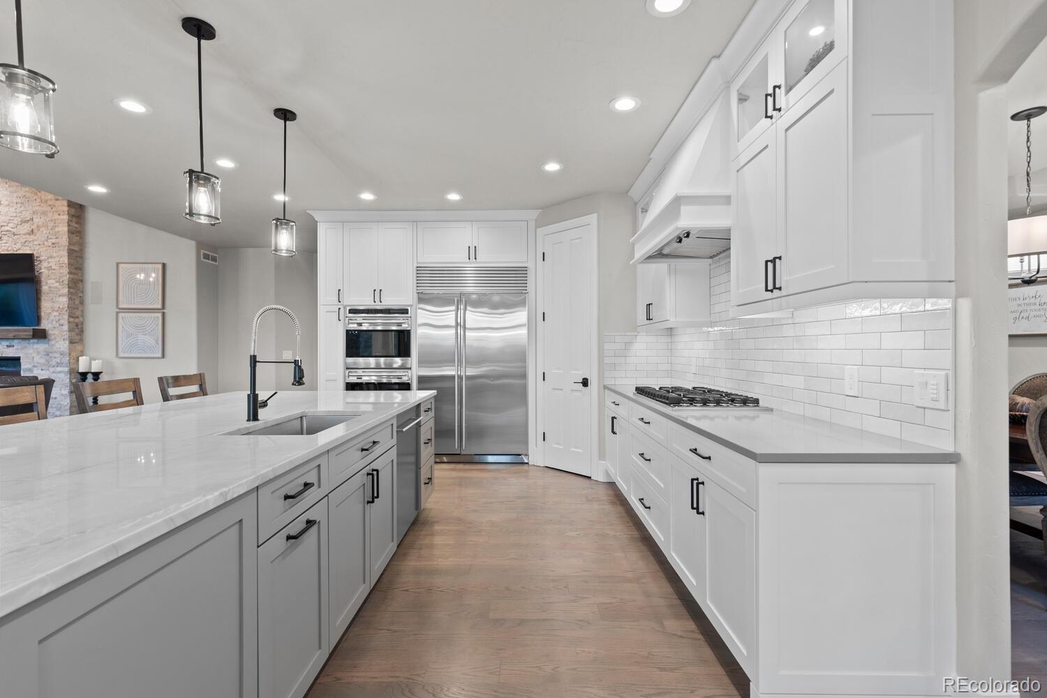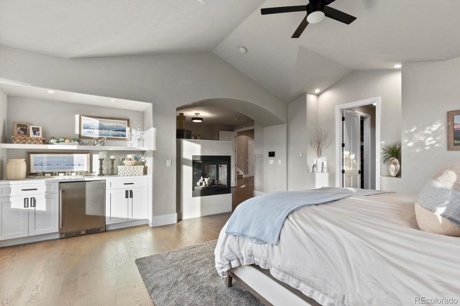 Experience Colorado luxury at its finest in this beautifully remodeled, custom-built estate in one of Highlands Ranch's most prestigious gated communities, The Highwoods. Situated on a meticulously landscaped 0.72-acre lot, this exceptional home offers breathtaking mountain views, resort-style outdoor living, and a floorplan blending timeless elegance with everyday comfort. The backyard is an entertainer's dream with a sparkling pool, relaxing spa, built-in fire pit, and panoramic mountain views. A large grassy area below the pool provides extra space for kids and dogs to play, making this outdoor retreat both beautiful and practical. Inside, handcrafted hardwood floors and architectural details shine throughout. The stunning kitchen features a large center island, custom white cabinetry, quartz countertops, Wolf double ovens, a 6-burner Viking gas cooktop, and built-in Sub-Zero refrigerator. It opens to a spacious family room with a cozy fireplace--perfect for entertaining or quiet nights. The main-floor primary suite offers a two-sided gas fireplace, sitting area, and dual custom walk-in closets. The luxuriously remodeled ensuite bath includes a soaking tub, heated tile floors, and a walk-in steam shower. Expansive decks one enclosed in custom glass, and one with built-in grill are ideal for enjoying Colorado's stunning sunsets. Upstairs are three generous bedroom suites, each with private baths and stunning mountain views. The finished walk-out basement expands living space dramatically, featuring a large guest bedroom, full bath, and home gym. The open-concept entertaining area includes a stylish wet bar and large gaming/family room that opens to outdoor living spaces--ideal for gatherings, game nights, or multi-generational living. Every inch of this home is updated with high-end finishes that complement its timeless design. From views and layout to luxurious outdoor features, this home epitomizes Colorado luxury living.