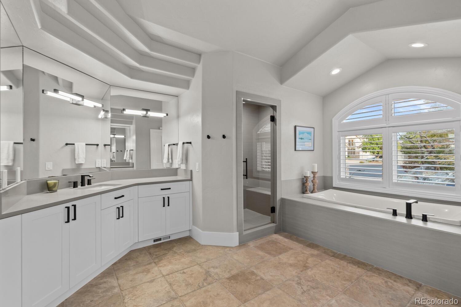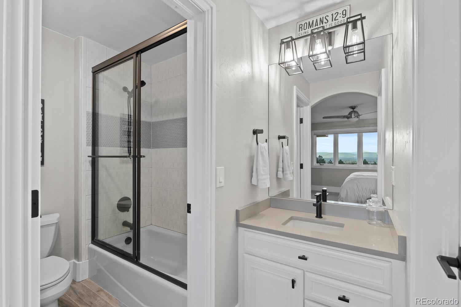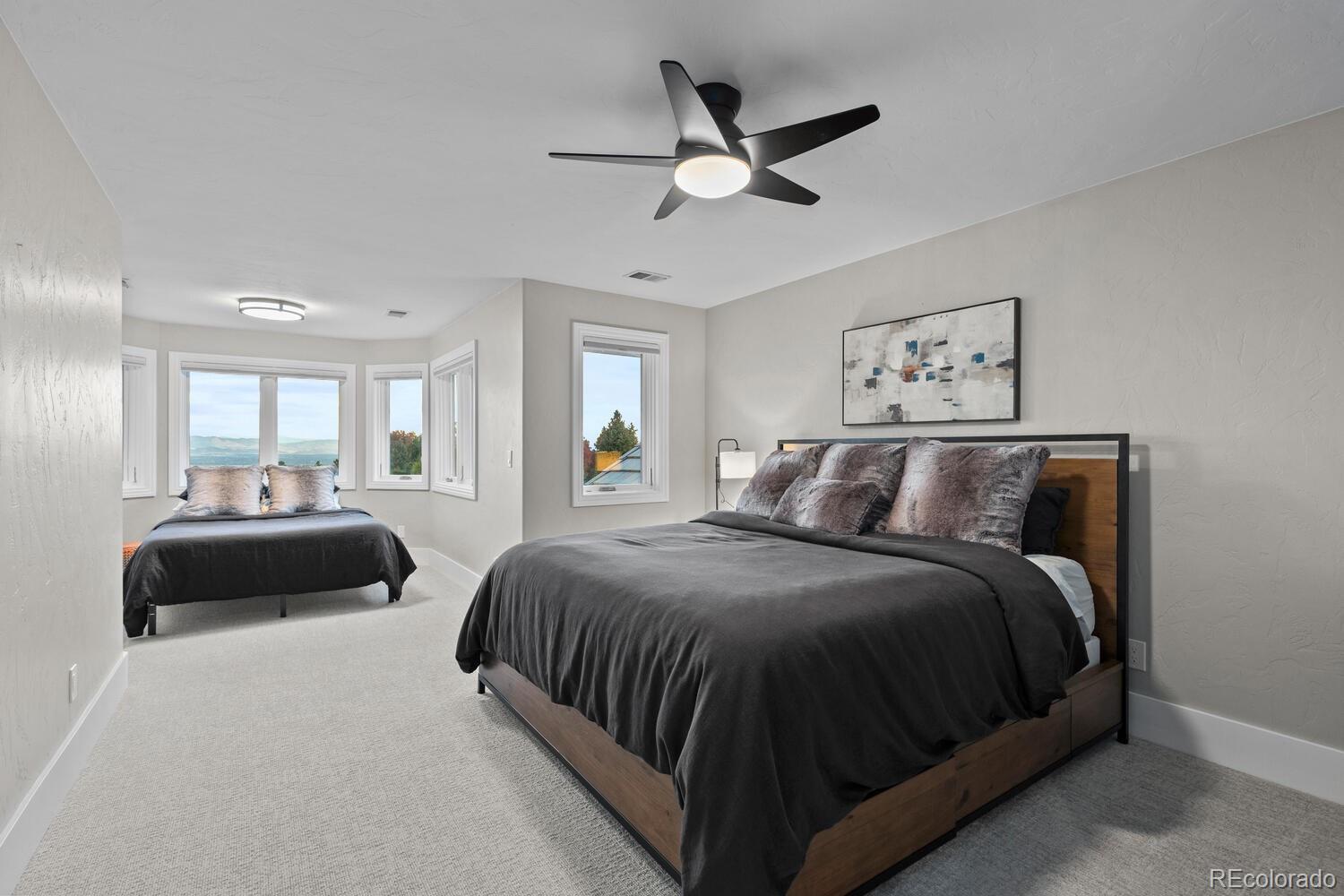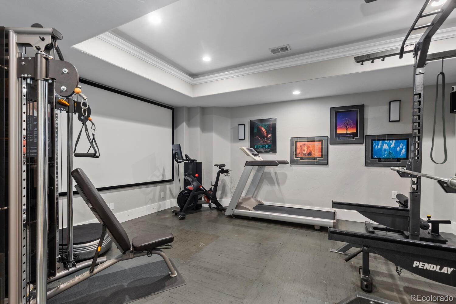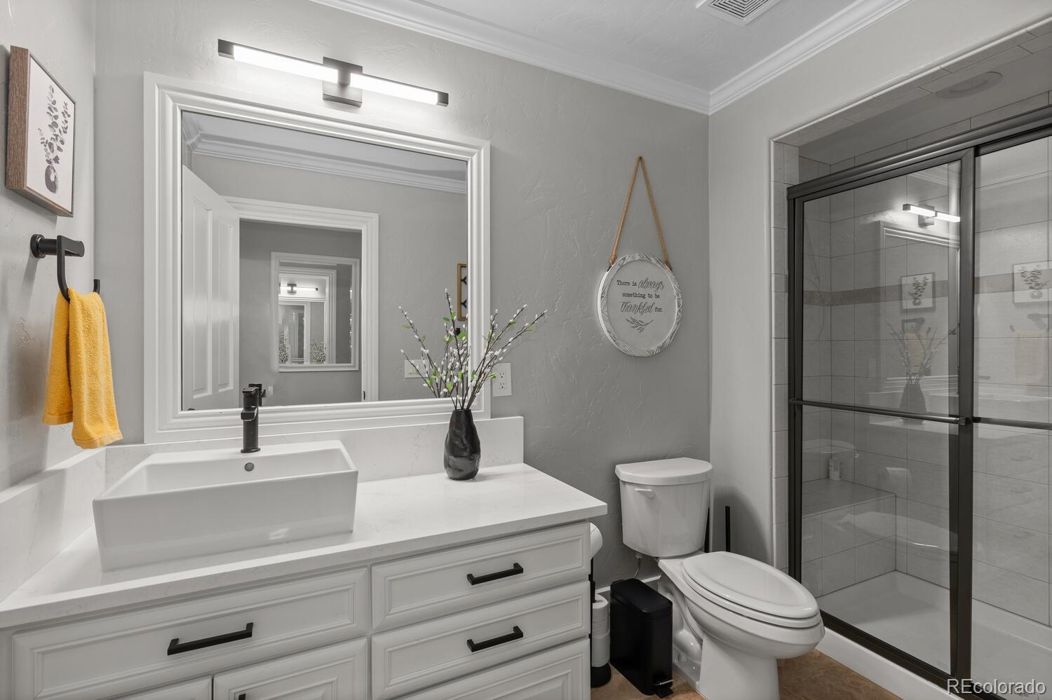 Experience Colorado luxury at its finest in this beautifully remodeled, custom-built estate in one of Highlands Ranch's most prestigious gated communities, The Highwoods. Situated on a meticulously landscaped 0.72-acre lot, this exceptional home offers breathtaking mountain views, resort-style outdoor living, and a floorplan blending timeless elegance with everyday comfort. The backyard is an entertainer's dream with a sparkling pool, relaxing spa, built-in fire pit, and panoramic mountain views. A large grassy area below the pool provides extra space for kids and dogs to play, making this outdoor retreat both beautiful and practical. Inside, handcrafted hardwood floors and architectural details shine throughout. The stunning kitchen features a large center island, custom white cabinetry, quartz countertops, Wolf double ovens, a 6-burner Viking gas cooktop, and built-in Sub-Zero refrigerator. It opens to a spacious family room with a cozy fireplace--perfect for entertaining or quiet nights. The main-floor primary suite offers a two-sided gas fireplace, sitting area, and dual custom walk-in closets. The luxuriously remodeled ensuite bath includes a soaking tub, heated tile floors, and a walk-in steam shower. Expansive decks one enclosed in custom glass, and one with built-in grill are ideal for enjoying Colorado's stunning sunsets. Upstairs are three generous bedroom suites, each with private baths and stunning mountain views. The finished walk-out basement expands living space dramatically, featuring a large guest bedroom, full bath, and home gym. The open-concept entertaining area includes a stylish wet bar and large gaming/family room that opens to outdoor living spaces--ideal for gatherings, game nights, or multi-generational living. Every inch of this home is updated with high-end finishes that complement its timeless design. From views and layout to luxurious outdoor features, this home epitomizes Colorado luxury living.