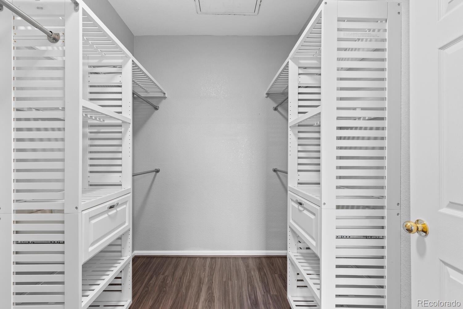 This spacious top-floor, 3-bedroom, 2-bath condo is the BEST value in the community. With vaulted ceilings, fresh paint throughout, solid-surface flooring, and no one living above, the home feels bright, open, and exceptionally quiet. The light-filled floor plan features a cozy gas fireplace and a private deck. A thoughtfully designed hallway niche offers a perfect built-in space for a home office--ideal for remote work or study. The oversized kitchen provides extensive storage and newer stainless-steel appliances, while the full laundry room includes a washer and dryer. The primary suite stands out with its custom walk-in closet, offering excellent organization and storage. Enjoy the privacy of a true top-floor residence along with two reserved parking passes plus one guest pass. HOA fees remain affordable and include access to a community swimming pool, basketball court, and pickleball courts, adding to the lifestyle appeal. The location is unbeatable for both convenience and commute times: Anschutz Medical Campus (12 minutes), DIA (20 minutes), and DTC (25 minutes). Everyday essentials are just a short walk away--Target, Barnes & Noble, Aurora Town Center, and numerous dining options. Outdoor enthusiasts will appreciate being moments from the 71-mile High Line Canal Trail, perfect for walking, biking, and running.