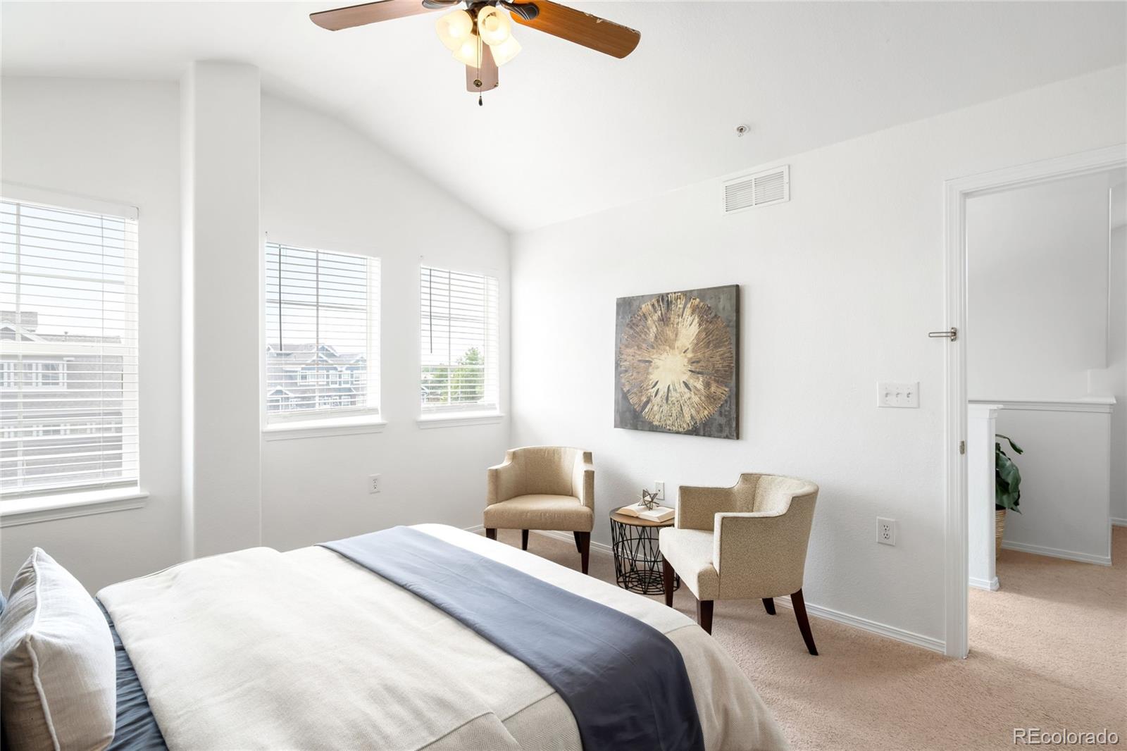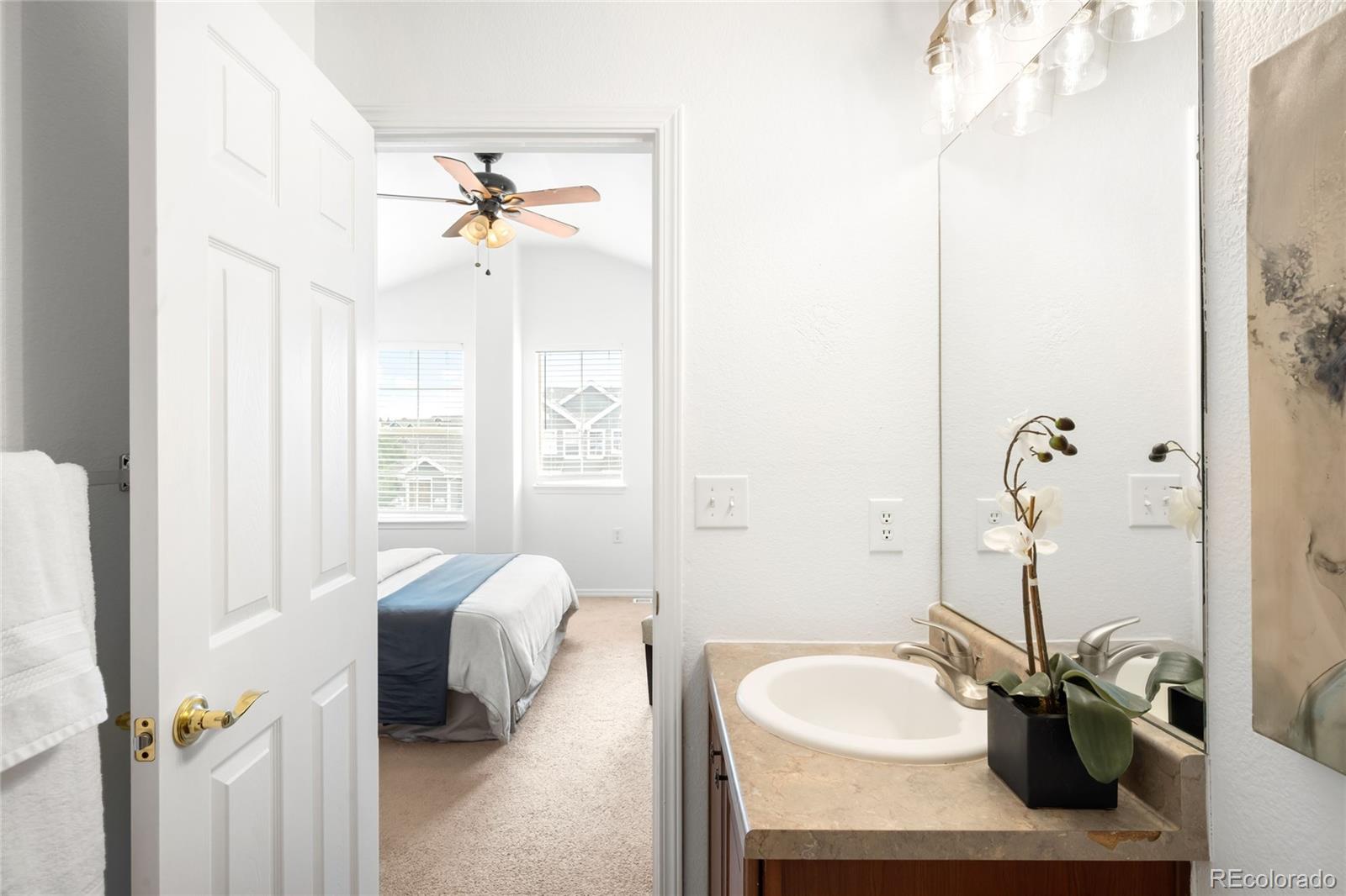 Welcome home to this sunny, light-filled retreat in The Colony at Cherry Creek. Vaulted ceilings and an open layout create an inviting main level, where a cozy tiled fireplace with a live-edge mantel anchors the living space. The updated kitchen features new countertops, a fresh backsplash, and ample storage--ideal for both everyday living and casual entertaining. A main-floor bedroom, full bath, and laundry add ease and functionality, while the upstairs primary suite offers a peaceful escape with a walk-in closet and private bath. A cheerful loft provides flexible space for a home office, workout area, or reading nook. Fresh paint throughout enhances the home's crisp, move-in-ready feel, and a private deck with mountain views sets the perfect scene for morning coffee or evening relaxation. With a new furnace and water heater, access to a community pool, and close proximity to parks, shopping, and major routes, this home truly checks all the boxes.