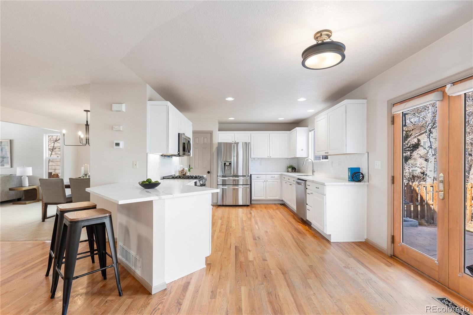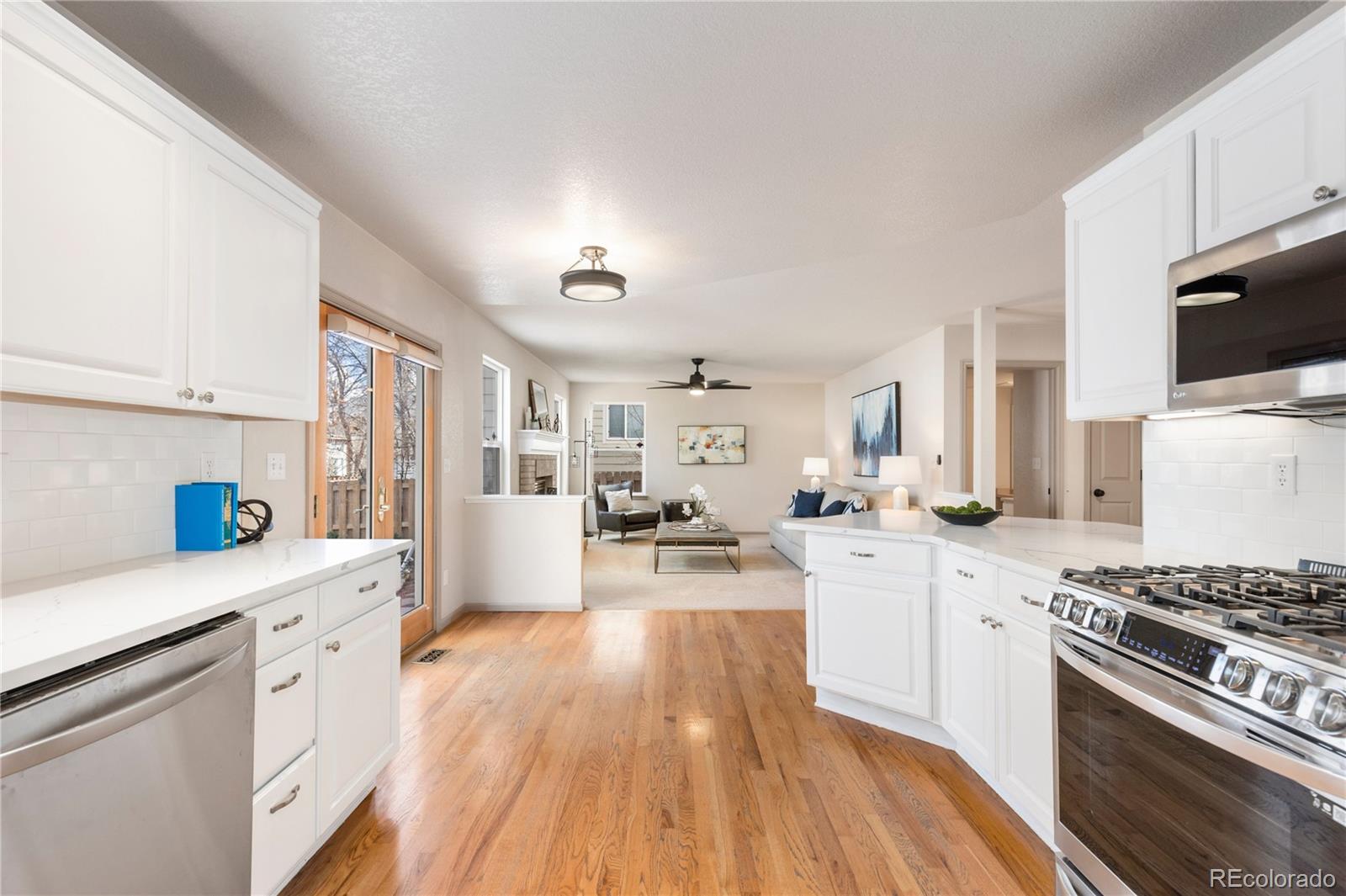 Welcome to a charming home with built-in income potential in a prime Denver location! This lovingly maintained home offers the perfect blend of classic charm and modern updates. Step inside to find gleaming hardwood floors throughout the main living areas, complemented by refreshed light fixtures that bring a contemporary feel to the space. The kitchen has been beautifully reimagined with elegant quartz countertops, subway tile backsplash, and premium stainless steel appliances. Cooking enthusiasts will appreciate the option to switch the gas stove (brand new within the past year) to electric, as the connection is already in place. The natural gas fireplace is a beautiful focal point in the family room. Entertaining is a breeze with the spacious stamped concrete patio in the back and the inviting covered front porch. The fully fenced backyard features a delightful mix of fruit trees and aspens, creating a private outdoor retreat. One of this property's standout features is the walk-out basement apartment--over 1,000 square feet of rentable space with its own private entrance, living room, full kitchen with a natural gas stove, bedroom, updated bathroom, washer and dryer hookups and abundant storage. This versatile space offers excellent income potential or room for extended family and friends. Located just steps from the Cherry Creek Bike Trail and Highline Canal, and within biking distance to the Cherry Creek Entertainment District, this home combines convenience with tranquility. Your search for the ideal combination of lifestyle and investment ends here.