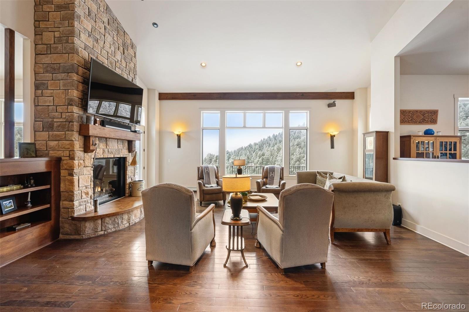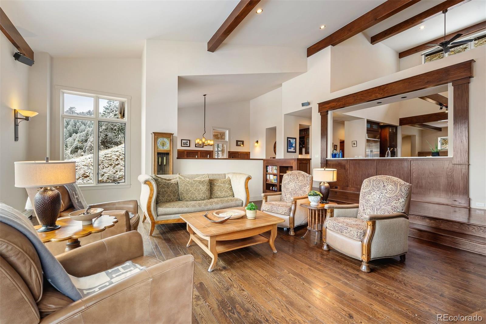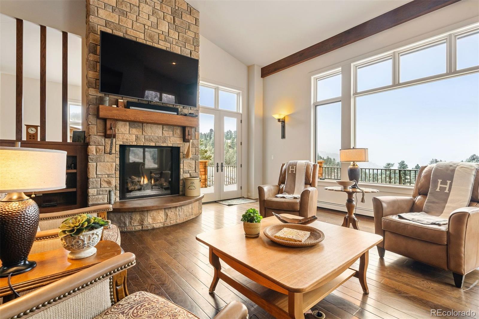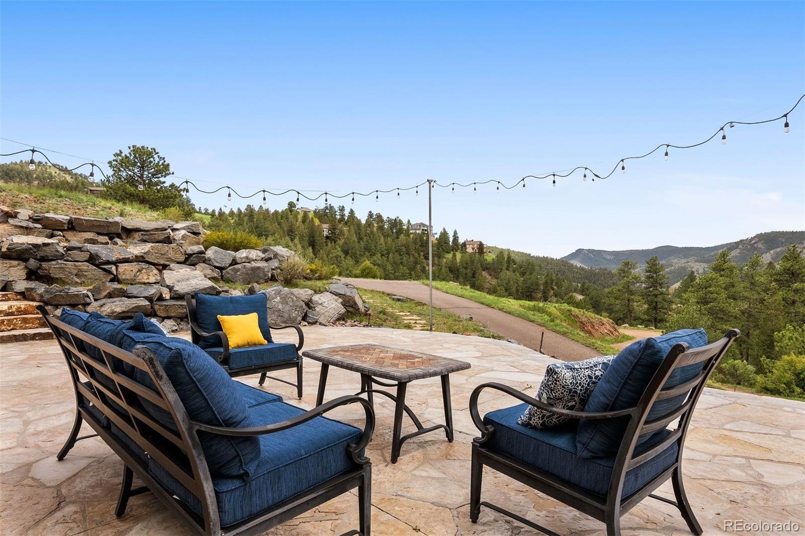 Home on the Range! Welcome to an exceptional ranch-style retreat just 5 minutes from I70 - in Burleson Ranch, a boutique neighborhood that epitomizes Colorado foothills charm & is steeped in the nostalgia of the area's ranching days. This home offers panoramic mountain views & peaceful country roads. You'll pass grazing cattle & horses on your way in & likely get a glimpse of the local elk herd. You'd never know you're just 15 minutes from Golden and Denver West! A southern-exposed driveway leads to an oversized heated garage with high ceilings, workshop space, and room for all your gear. Step inside to discover impeccable craftsmanship throughout: gleaming wood floors, elegant wood accents & museum-quality flat walls. The gourmet kitchen stands as a chef's paradise with Viking 6-burner range, pot filler, 2 dishwashers & spacious island; it opens to both living room and hearth room. A meal planning desk, bar area & walk-in pantry add functionality & convenience. The main floor primary suite is a sanctuary with mtn. views, private deck, fireplace & luxurious bathroom with soaking tub. The expansive walk-in closet is just dreamy. A separate guest suite on the main level includes thoughtful amenities like a coffee nook with sink & refrigerator, a private bath & its own entry. Practical luxury continues with a breezeway/mudroom featuring built-in lockers, a generous laundry room with a dog wash station & a bright, peaceful home office. Outdoor entertainment reaches new heights with a custom kitchen featuring a built-in barbecue and wok. The lower level welcomes you with a show-stopping custom backlit honey onyx bar that is the piece de resistance of the great room - perfect for entertaining. Additional lower-level features include a home gym, two light-filled bedrooms & a versatile storage room with custom sink that could be used for brewing or as a darkroom. Get away from it all while staying close enough to hit Whole Foods or DIA with ease!
