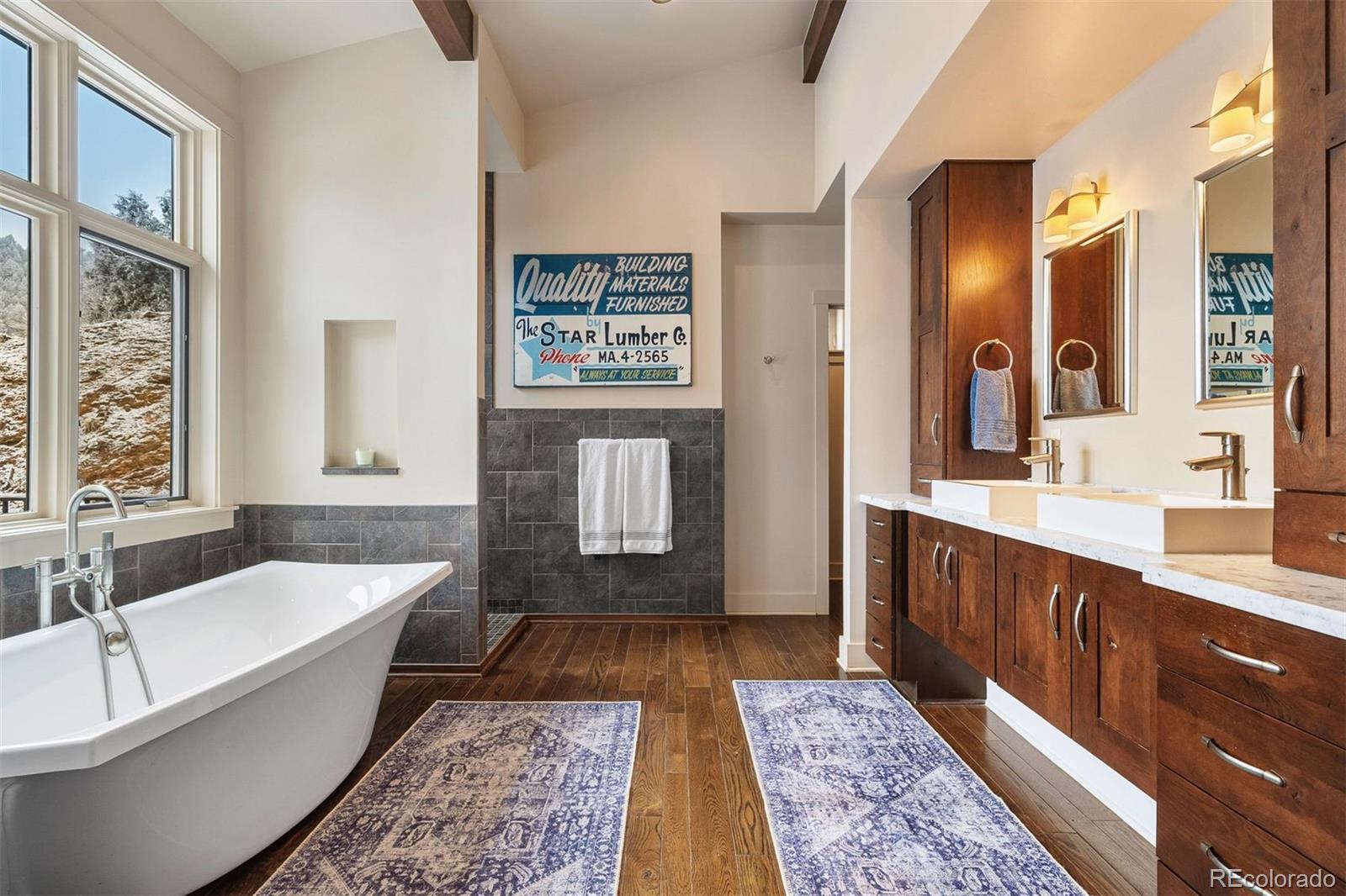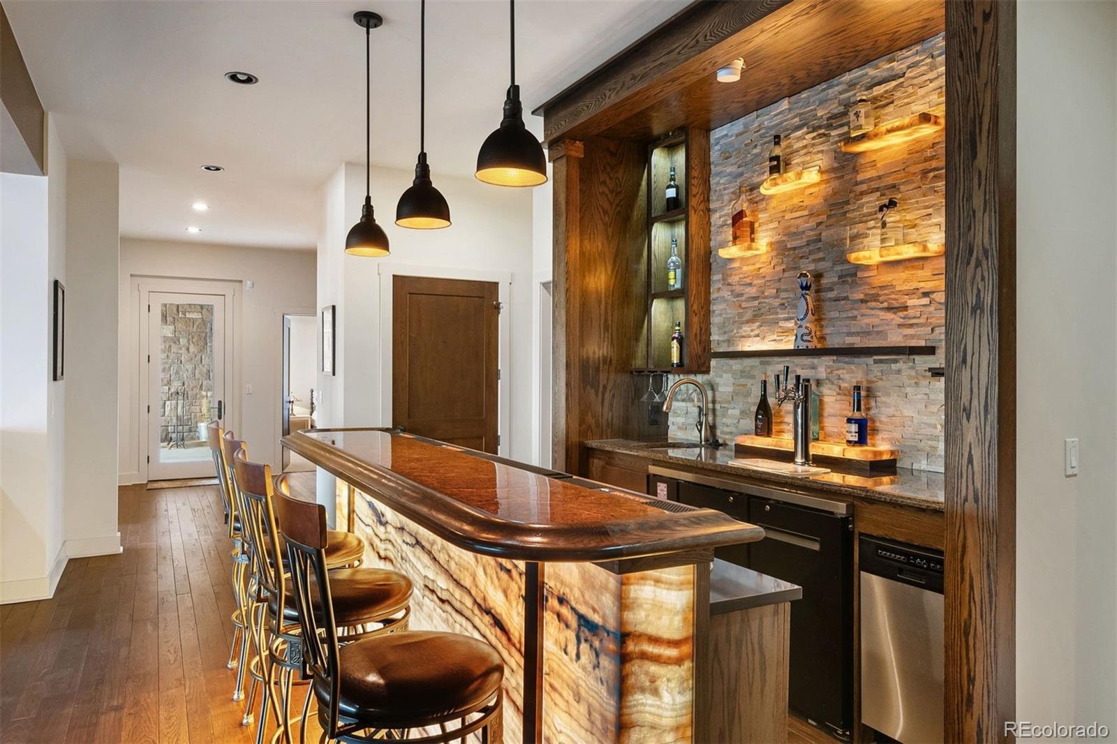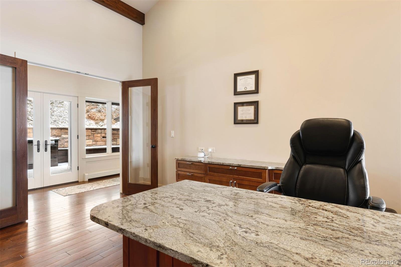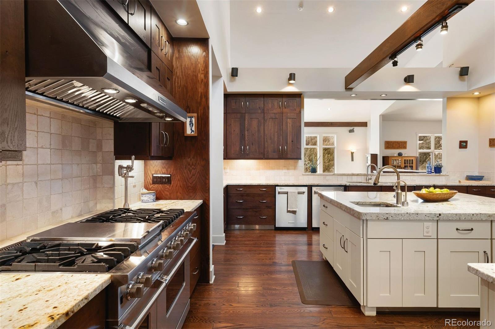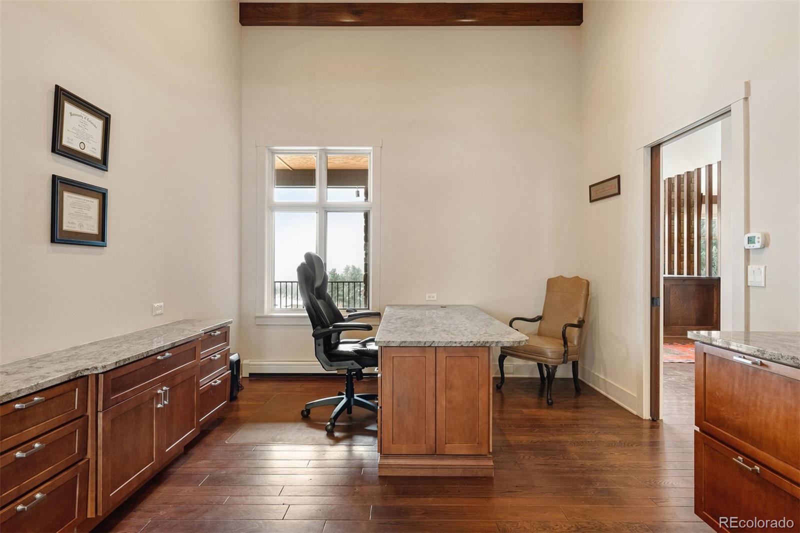 Home on the Range! Welcome to an exceptional ranch-style retreat just 5 minutes from I70 - in Burleson Ranch, a boutique neighborhood that epitomizes Colorado foothills charm & is steeped in the nostalgia of the area's ranching days. This home offers panoramic mountain views & peaceful country roads. You'll pass grazing cattle & horses on your way in & likely get a glimpse of the local elk herd. You'd never know you're just 15 minutes from Golden and Denver West! A southern-exposed driveway leads to an oversized heated garage with high ceilings, workshop space, and room for all your gear. Step inside to discover impeccable craftsmanship throughout: gleaming wood floors, elegant wood accents & museum-quality flat walls. The gourmet kitchen stands as a chef's paradise with Viking 6-burner range, pot filler, 2 dishwashers & spacious island; it opens to both living room and hearth room. A meal planning desk, bar area & walk-in pantry add functionality & convenience. The main floor primary suite is a sanctuary with mtn. views, private deck, fireplace & luxurious bathroom with soaking tub. The expansive walk-in closet is just dreamy. A separate guest suite on the main level includes thoughtful amenities like a coffee nook with sink & refrigerator, a private bath & its own entry. Practical luxury continues with a breezeway/mudroom featuring built-in lockers, a generous laundry room with a dog wash station & a bright, peaceful home office. Outdoor entertainment reaches new heights with a custom kitchen featuring a built-in barbecue and wok. The lower level welcomes you with a show-stopping custom backlit honey onyx bar that is the piece de resistance of the great room - perfect for entertaining. Additional lower-level features include a home gym, two light-filled bedrooms & a versatile storage room with custom sink that could be used for brewing or as a darkroom. Get away from it all while staying close enough to hit Whole Foods or DIA with ease!