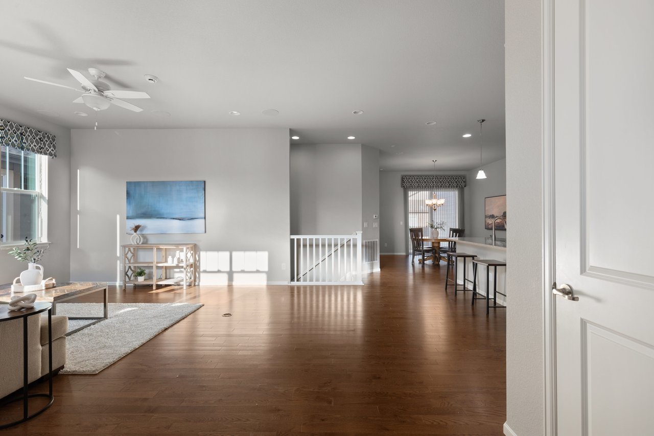 Effortless living in The Meadows awaits in this beautifully designed ranch-style duplex located in Castle Rock's highly desirable New Haven Patio Community. Created for a true lock-and-leave lifestyle, this home lets you enjoy Colorado living without the burden of maintenance.Step inside onto rich hardwood floors to find an open, inviting layout filled with natural light and thoughtful upgrades. Fresh paint, new carpeting, and Hunter Douglas remote window coverings give the home a modern, move-in-ready feel. The lovely kitchen features a large granite island and stainless steel appliances--an ideal setting for both everyday meals and casual entertaining--and flows seamlessly into the dining area and spacious great room, perfect for gatherings with family and friends. A versatile main floor office or study provides the perfect space for remote work. The conveniently located laundry and mudroom connect directly to the two-car garage. Outside, you'll find a welcoming covered front porch and a peaceful covered back patio that looks out over a greenbelt--an ideal spot to unwind. The unfinished basement offers excellent storage options or potential for future expansion.