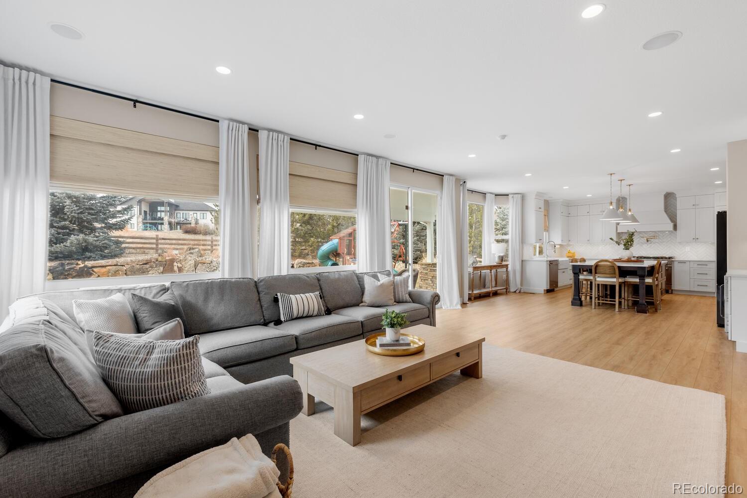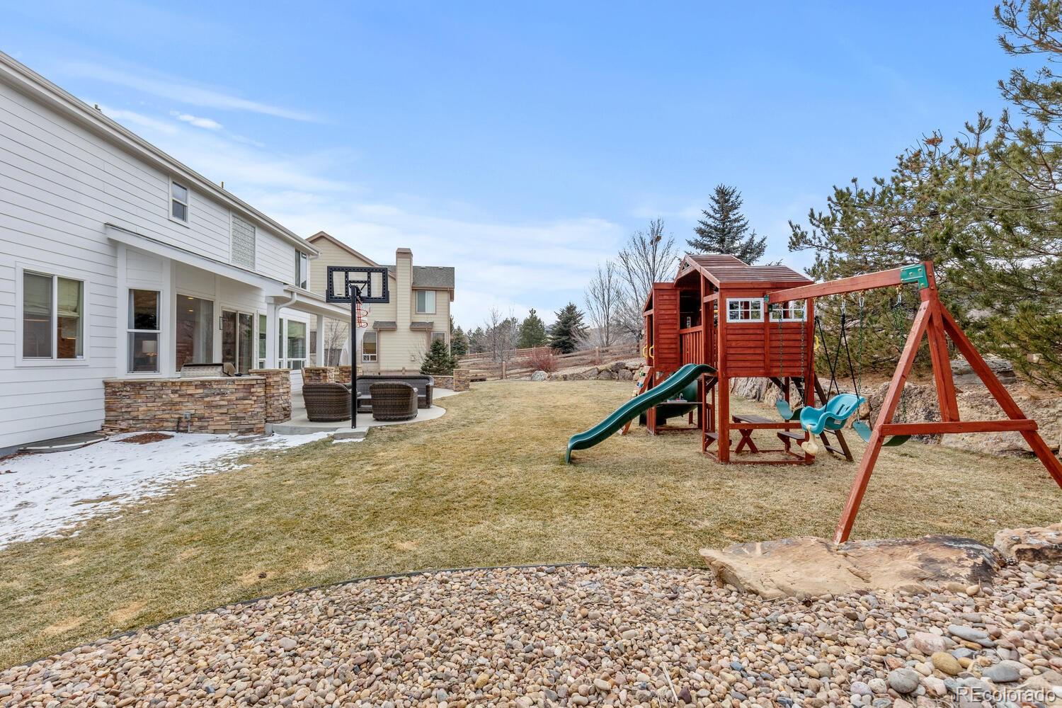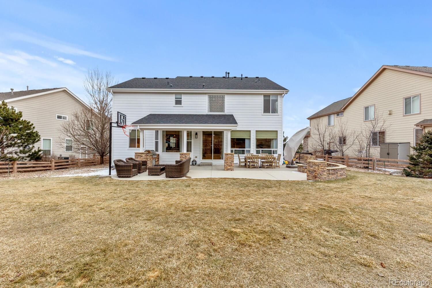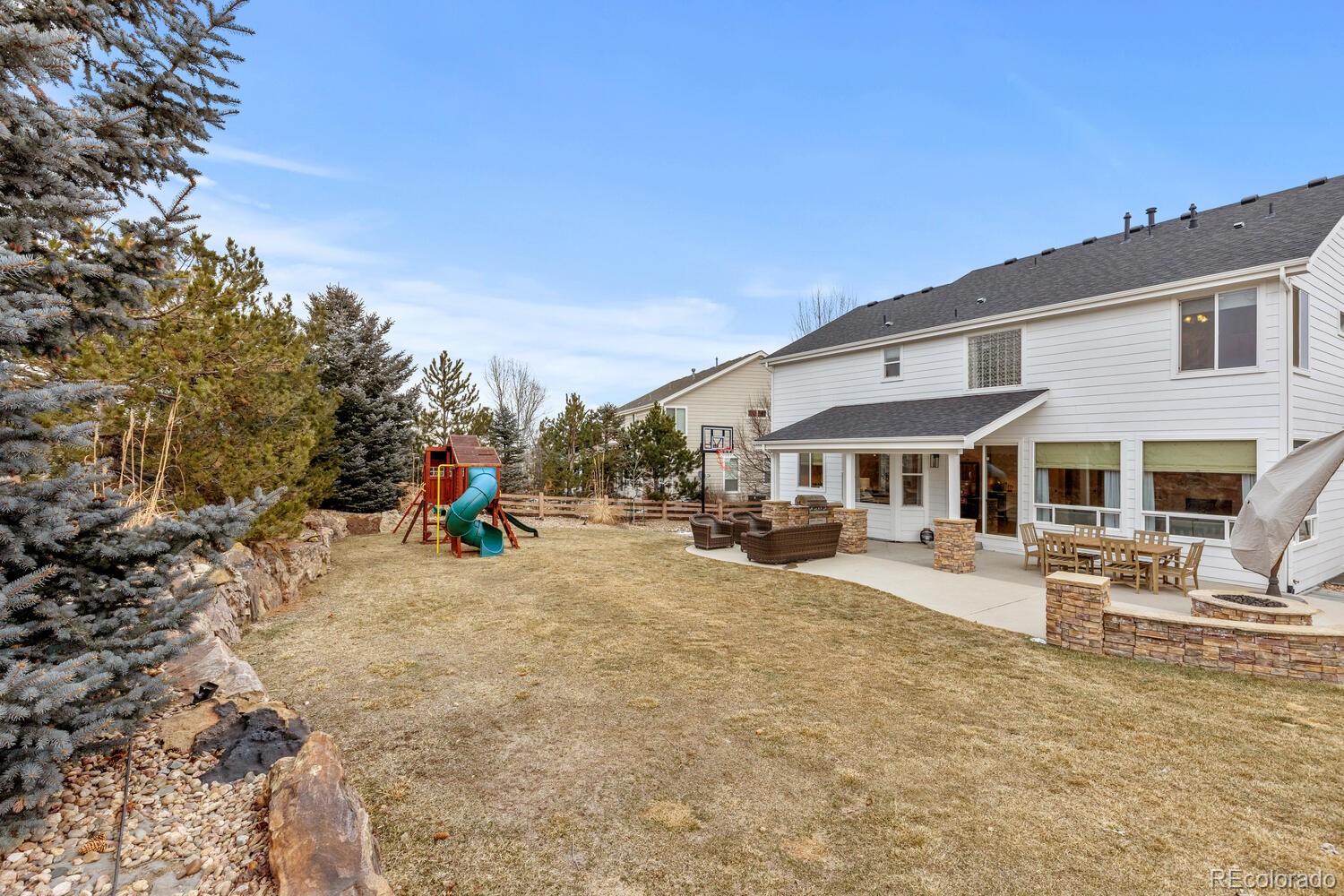Modern luxury meets timeless sophistication in this stunning remodel in the highly coveted Pradera Golf Community! Perfectly situated on a third-acre lot backing to a greenbelt, this home blends expansive outdoor living with over $275K in thoughtful updates, making it truly one-of-a-kind.The striking curb appeal and welcoming front porch set the stage for the refined design inside. Step through the door to soaring vaulted ceilings, a dramatic curved staircase, light oak flooring, designer finishes, and a neutral palette that creates an inviting open concept flow. The gourmet kitchen is a showpiece, featuring high-end appliances, a custom wood vent hood, brass pot filler, expansive island, luxury wide plank flooring, and designer lighting. The dining room, great room, kids' office spaces, updated powder bath, and redesigned laundry/mudroom all flow seamlessly together for everyday function and entertaining alike. Upstairs, the master retreat offers a cozy fireplace, spa-like five-piece bath, and generous walk-in closet. Three additional bedrooms and two bathrooms complete the upper level. The finished basement adds nearly 1,800 SF of versatile living: a glass enclosed home gym, two bedrooms, a full bath, under-stair play nook, and a family room with a built-in bar--perfect for movie nights or entertaining. The oversized three-car garage provides extra storage for all your gear, while the backyard retreat boasts a covered patio with fire pit, outdoor kitchen, and built-in basketball hoop for endless enjoyment. Living in Pradera means access to premier community amenities including trails, open space, playgrounds, pool, parks, and an optional golf membership. All with easy access to I-25, DTC, Castle Rock, shopping, dining, and more!