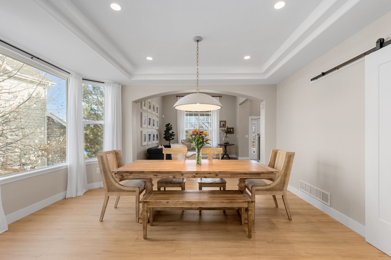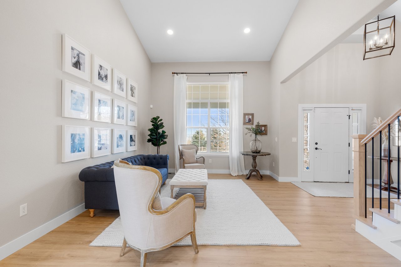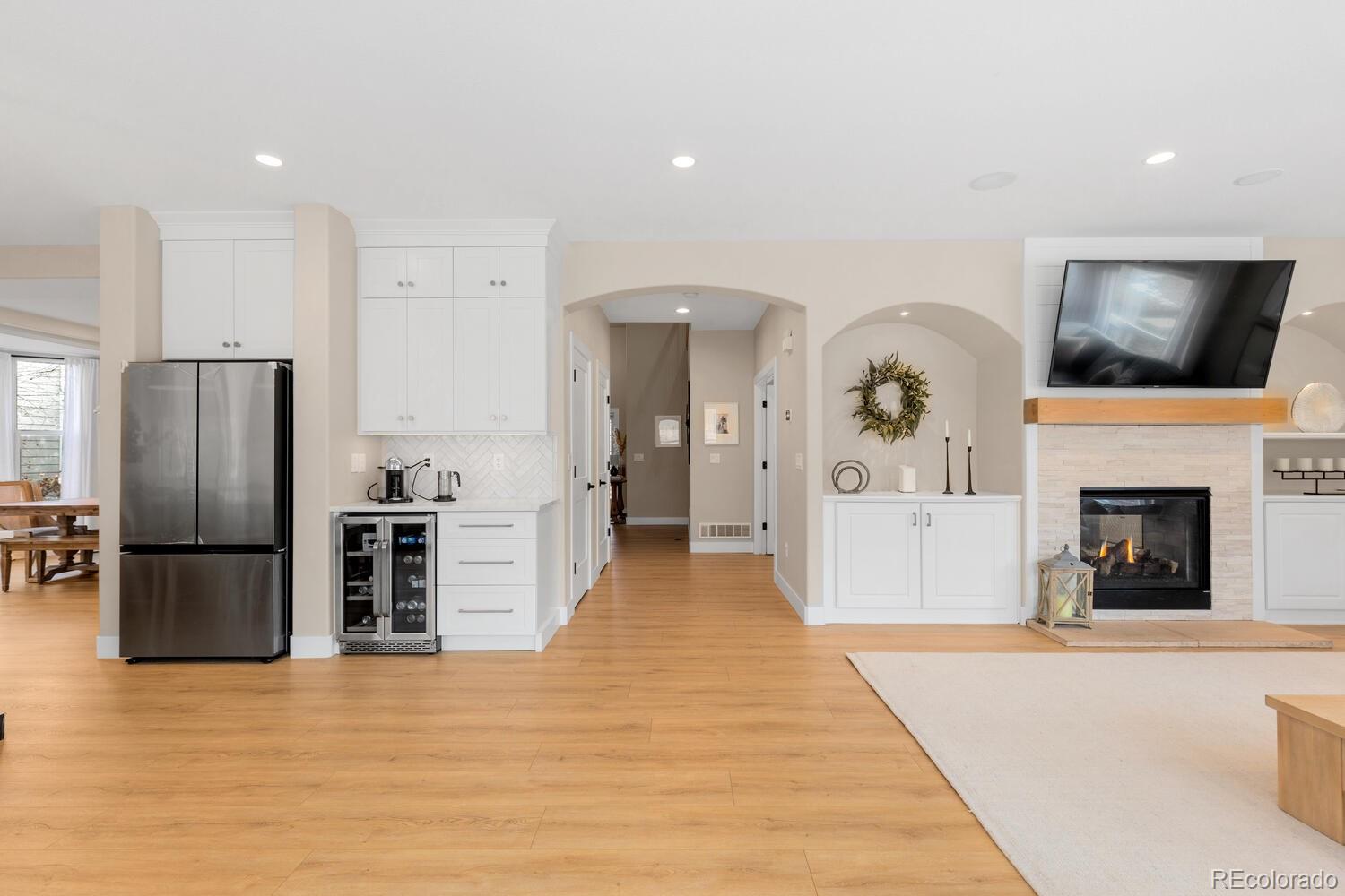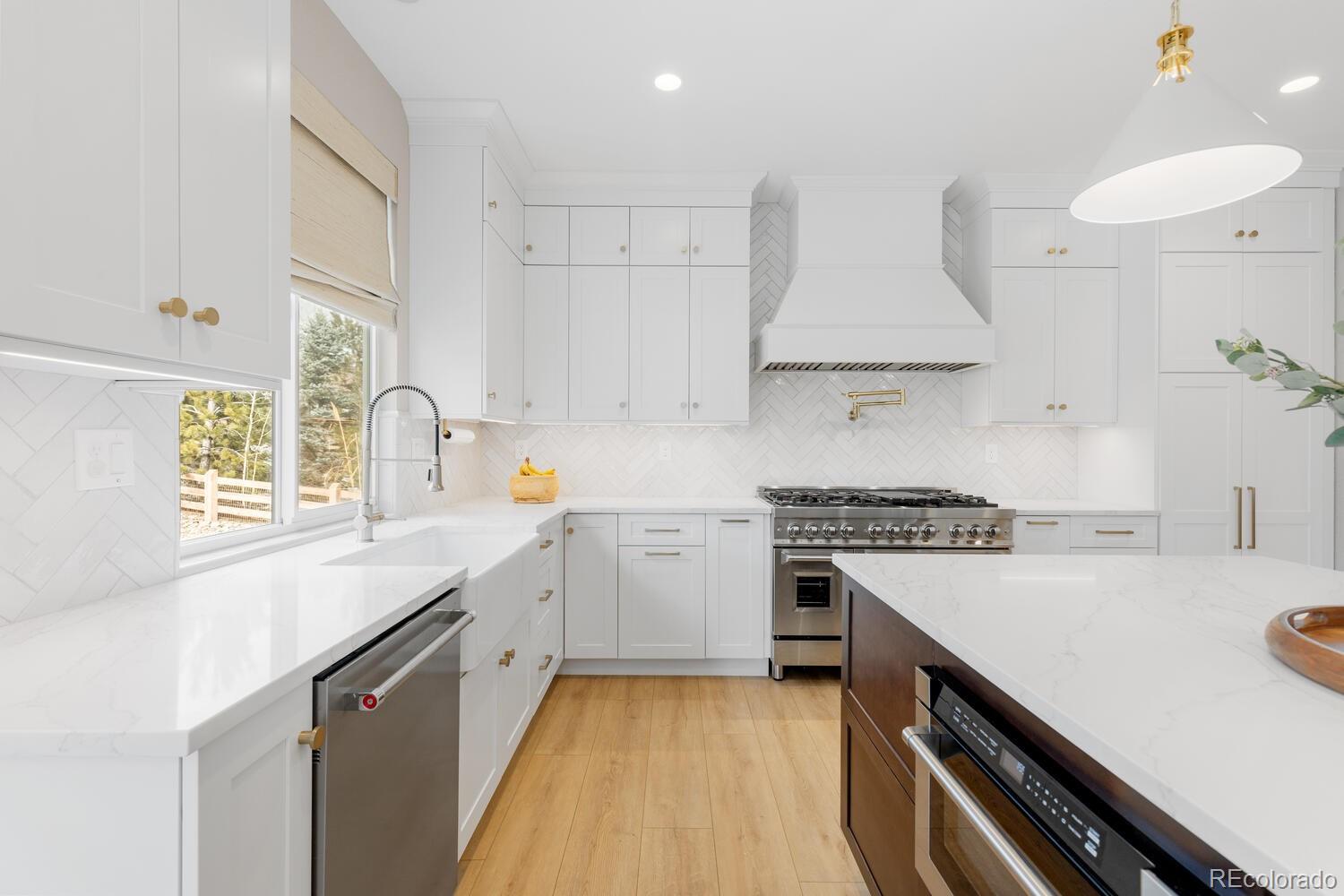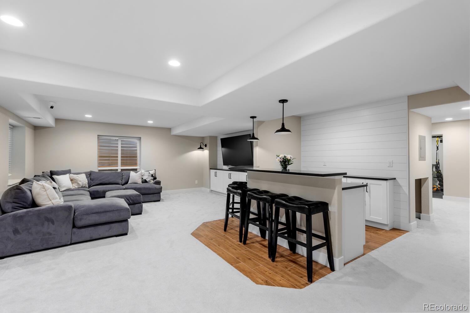 Modern luxury meets timeless sophistication in this stunning remodel in the highly coveted Pradera Golf Community! Perfectly situated on a third-acre lot backing to a greenbelt, this home blends expansive outdoor living with over $275K in thoughtful updates, making it truly one-of-a-kind.The striking curb appeal and welcoming front porch set the stage for the refined design inside. Step through the door to soaring vaulted ceilings, a dramatic curved staircase, light oak flooring, designer finishes, and a neutral palette that creates an inviting open concept flow. The gourmet kitchen is a showpiece, featuring high-end appliances, a custom wood vent hood, brass pot filler, expansive island, luxury wide plank flooring, and designer lighting. The dining room, great room, kids' office spaces, updated powder bath, and redesigned laundry/mudroom all flow seamlessly together for everyday function and entertaining alike. Upstairs, the master retreat offers a cozy fireplace, spa-like five-piece bath, and generous walk-in closet. Three additional bedrooms and two bathrooms complete the upper level. The finished basement adds nearly 1,800 SF of versatile living: a glass enclosed home gym, two bedrooms, a full bath, under-stair play nook, and a family room with a built-in bar--perfect for movie nights or entertaining. The oversized three-car garage provides extra storage for all your gear, while the backyard retreat boasts a covered patio with fire pit, outdoor kitchen, and built-in basketball hoop for endless enjoyment. Living in Pradera means access to premier community amenities including trails, open space, playgrounds, pool, parks, and an optional golf membership. All with easy access to I-25, DTC, Castle Rock, shopping, dining, and more!