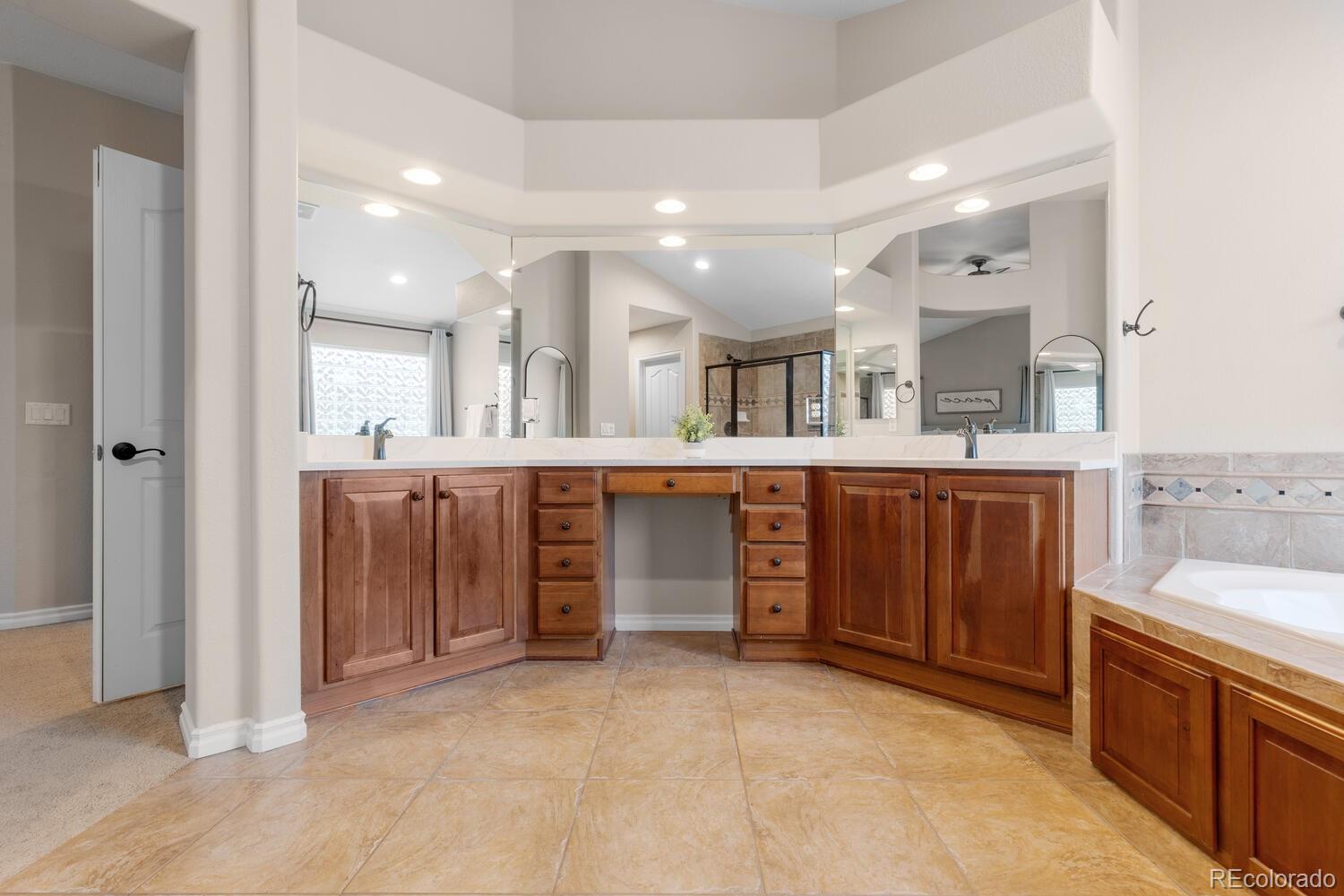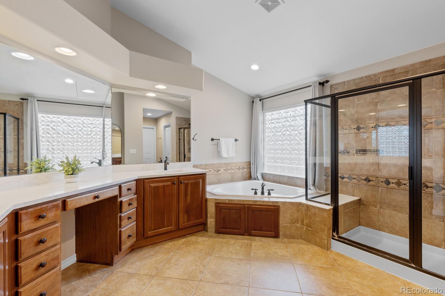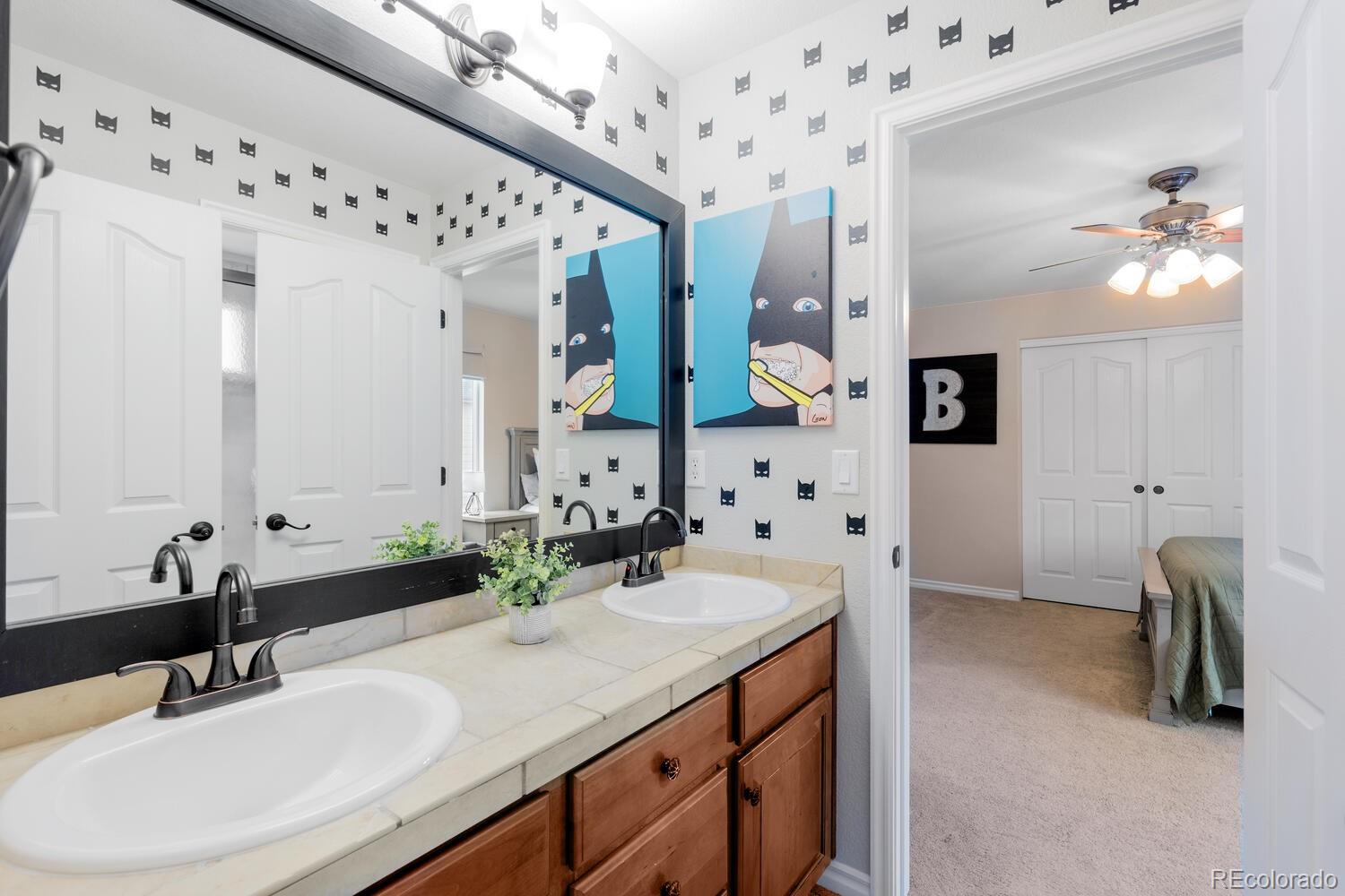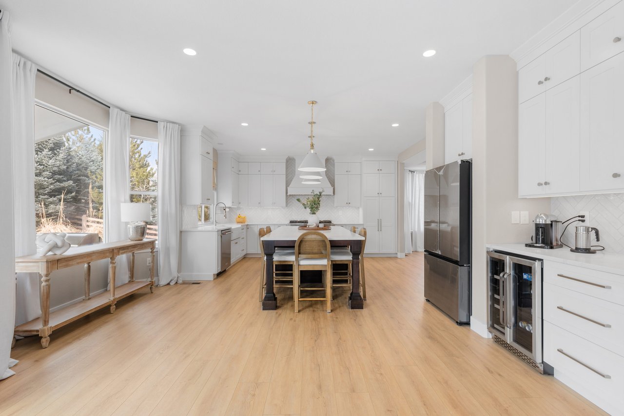 Modern luxury meets timeless sophistication in this stunning remodel in the highly coveted Pradera Golf Community! Perfectly situated on a third-acre lot backing to a greenbelt, this home blends expansive outdoor living with over $275K in thoughtful updates, making it truly one-of-a-kind.The striking curb appeal and welcoming front porch set the stage for the refined design inside. Step through the door to soaring vaulted ceilings, a dramatic curved staircase, light oak flooring, designer finishes, and a neutral palette that creates an inviting open concept flow. The gourmet kitchen is a showpiece, featuring high-end appliances, a custom wood vent hood, brass pot filler, expansive island, luxury wide plank flooring, and designer lighting. The dining room, great room, kids' office spaces, updated powder bath, and redesigned laundry/mudroom all flow seamlessly together for everyday function and entertaining alike. Upstairs, the master retreat offers a cozy fireplace, spa-like five-piece bath, and generous walk-in closet. Three additional bedrooms and two bathrooms complete the upper level. The finished basement adds nearly 1,800 SF of versatile living: a glass enclosed home gym, two bedrooms, a full bath, under-stair play nook, and a family room with a built-in bar--perfect for movie nights or entertaining. The oversized three-car garage provides extra storage for all your gear, while the backyard retreat boasts a covered patio with fire pit, outdoor kitchen, and built-in basketball hoop for endless enjoyment. Living in Pradera means access to premier community amenities including trails, open space, playgrounds, pool, parks, and an optional golf membership. All with easy access to I-25, DTC, Castle Rock, shopping, dining, and more!
