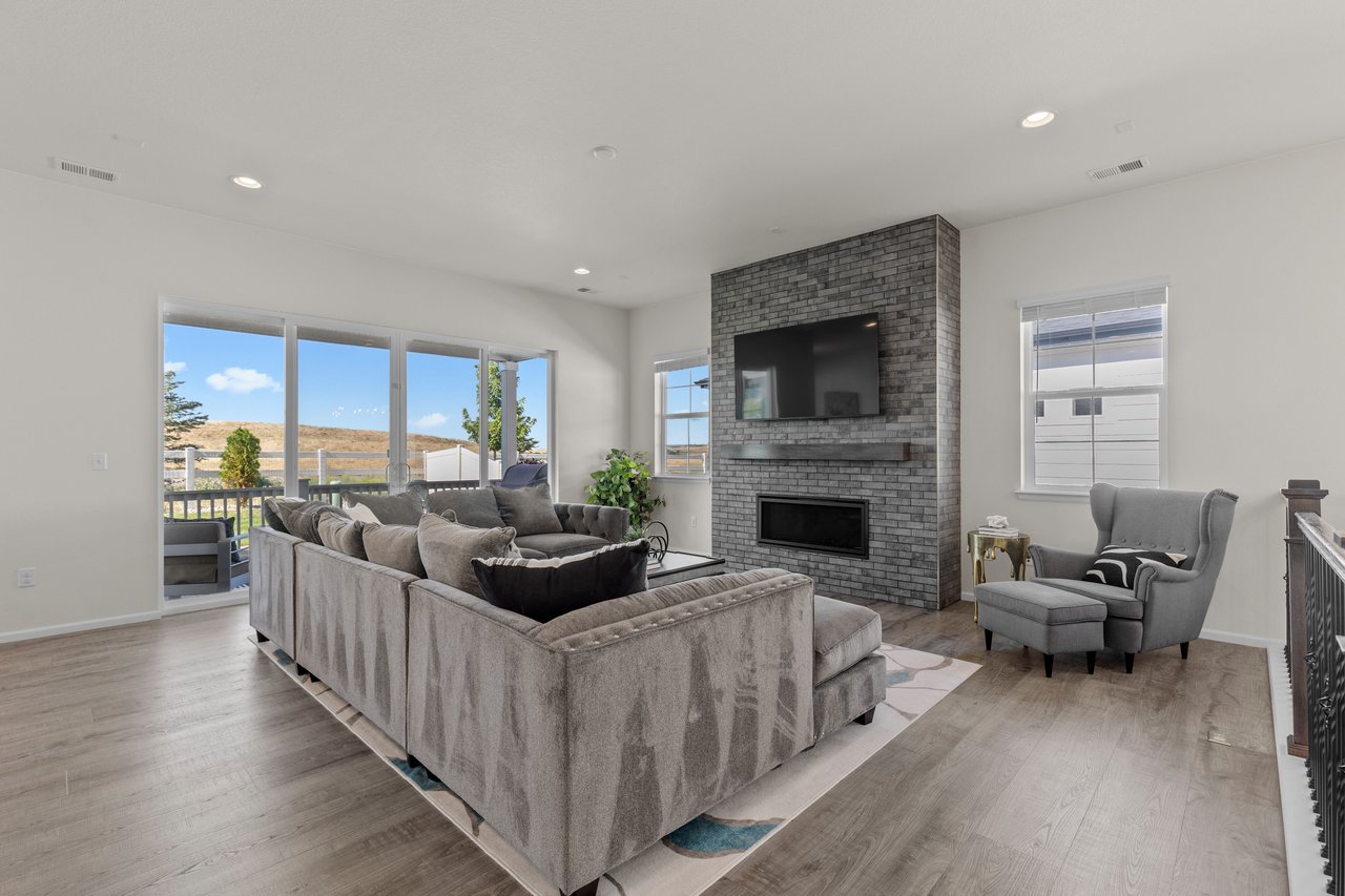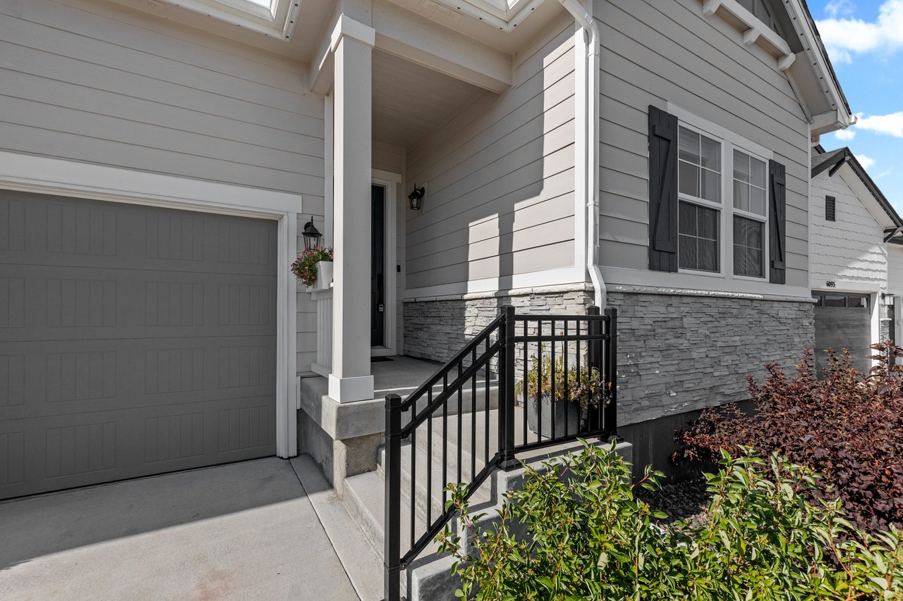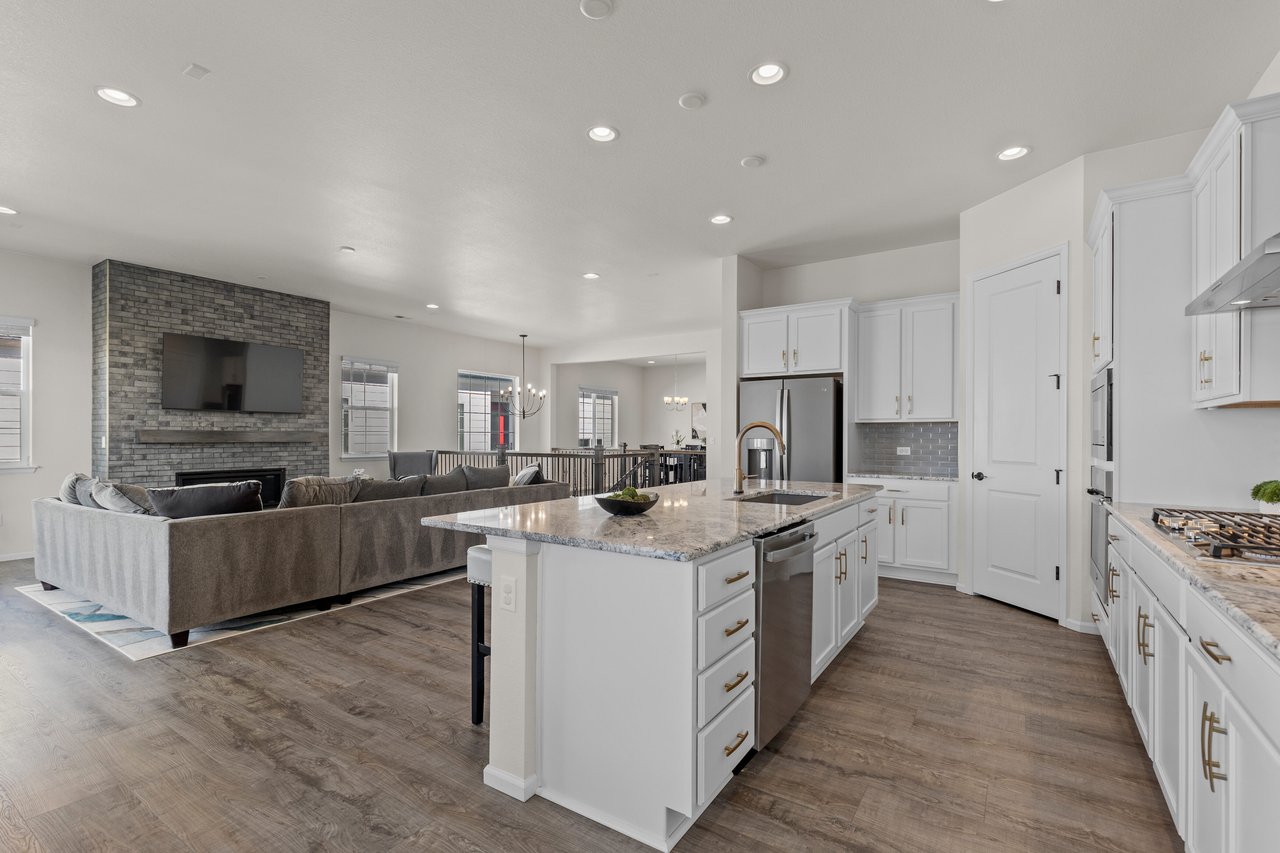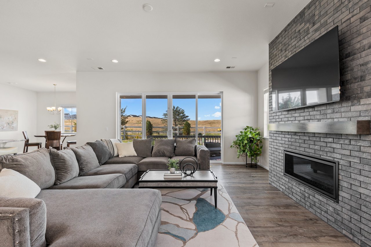Set within the scenic enclave of Stone Creek Ranch, this 2022 ranch-style home captures sweeping views of Colorado's rolling hills and offers a sophisticated take on modern, main-floor living. Expansive windows bathe the main level in natural light, creating a warm and welcoming atmosphere equally suited for quiet mornings and effortless entertaining. The chef's kitchen is the true centerpiece, featuring an oversized island, timeless subway tile backsplash, stainless steel appliances, and a walk-in pantry. The space flows seamlessly into the dining area and great room, where a sleek fireplace provides a stylish focal point. Sliding glass doors invite indoor-outdoor living and frame the surrounding landscape. The primary suite serves as a serene retreat with peaceful views, a spa-inspired bathroom, and a generous walk-in closet. The finished lower level expands the home's versatility, offering a wet bar, media area, and flexible spaces ideal for guests, a home gym, or creative pursuits. Additional highlights include a three-car garage, solar panels, and thoughtful designer finishes throughout. Residents also enjoy access to outstanding community amenities, including a pool, clubhouse, parks, and trails. This exceptional home delivers modern comfort, functionality, and outstanding value--main-floor living at its finest.