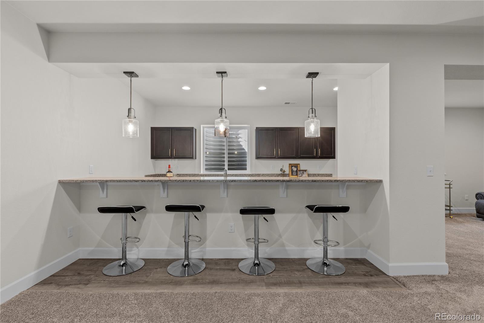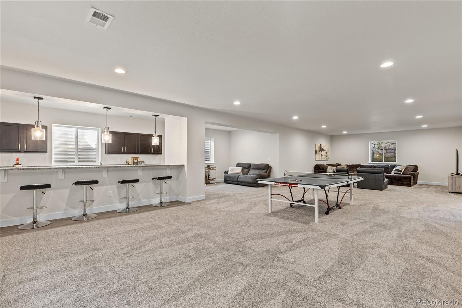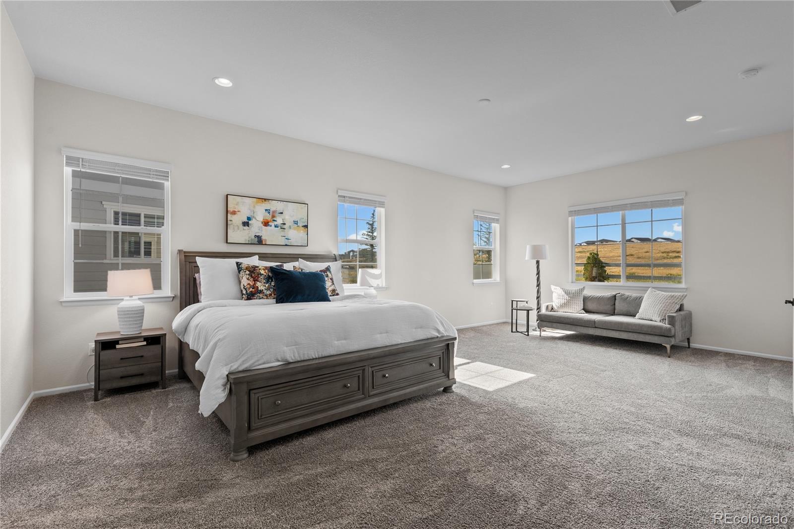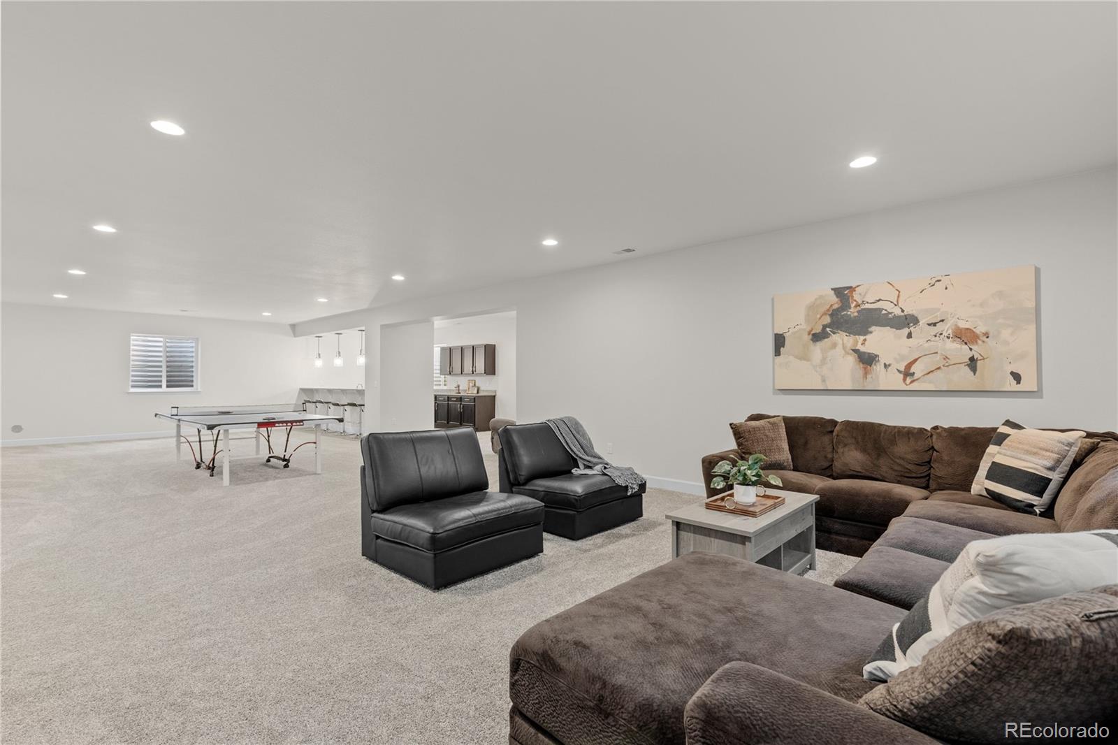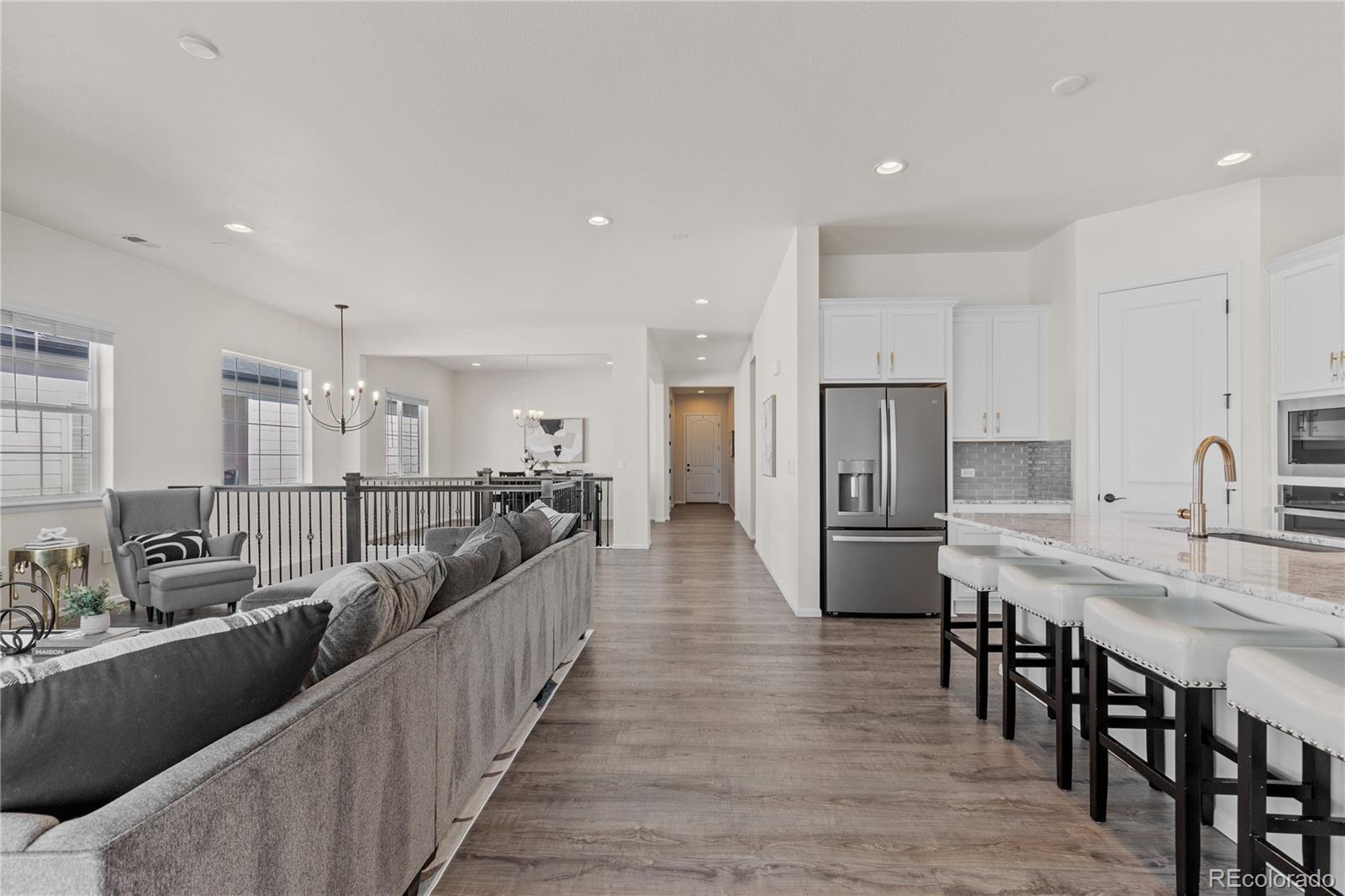 Set within the scenic enclave of Stone Creek Ranch, this 2022 ranch-style home captures sweeping views of Colorado's rolling hills and offers a sophisticated take on modern, main-floor living. Expansive windows bathe the main level in natural light, creating a warm and welcoming atmosphere equally suited for quiet mornings and effortless entertaining. The chef's kitchen is the true centerpiece, featuring an oversized island, timeless subway tile backsplash, stainless steel appliances, and a walk-in pantry. The space flows seamlessly into the dining area and great room, where a sleek fireplace provides a stylish focal point. Sliding glass doors invite indoor-outdoor living and frame the surrounding landscape. The primary suite serves as a serene retreat with peaceful views, a spa-inspired bathroom, and a generous walk-in closet. The finished lower level expands the home's versatility, offering a wet bar, media area, and flexible spaces ideal for guests, a home gym, or creative pursuits. Additional highlights include a three-car garage, solar panels, and thoughtful designer finishes throughout. Residents also enjoy access to outstanding community amenities, including a pool, clubhouse, parks, and trails. This exceptional home delivers modern comfort, functionality, and outstanding value--main-floor living at its finest.