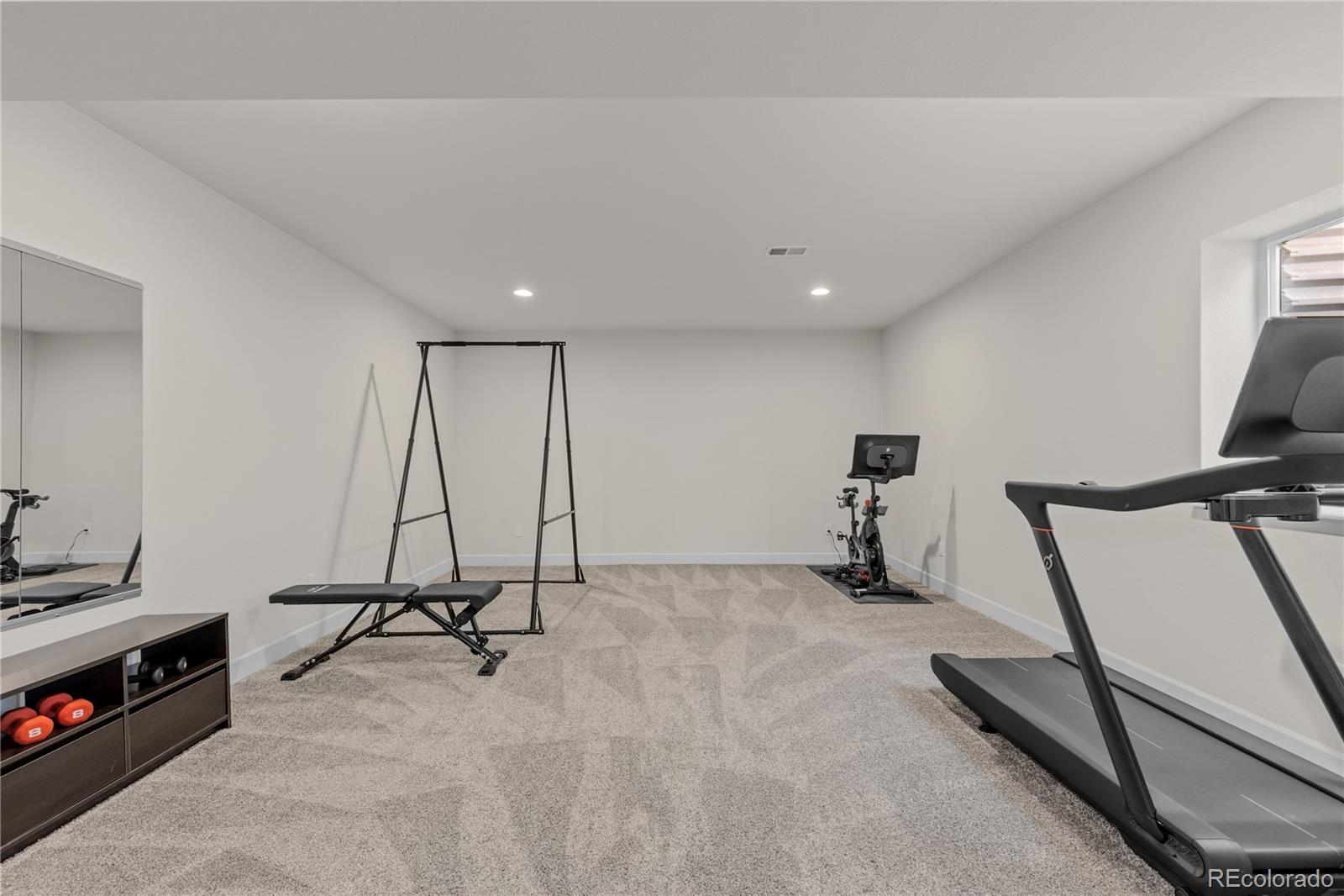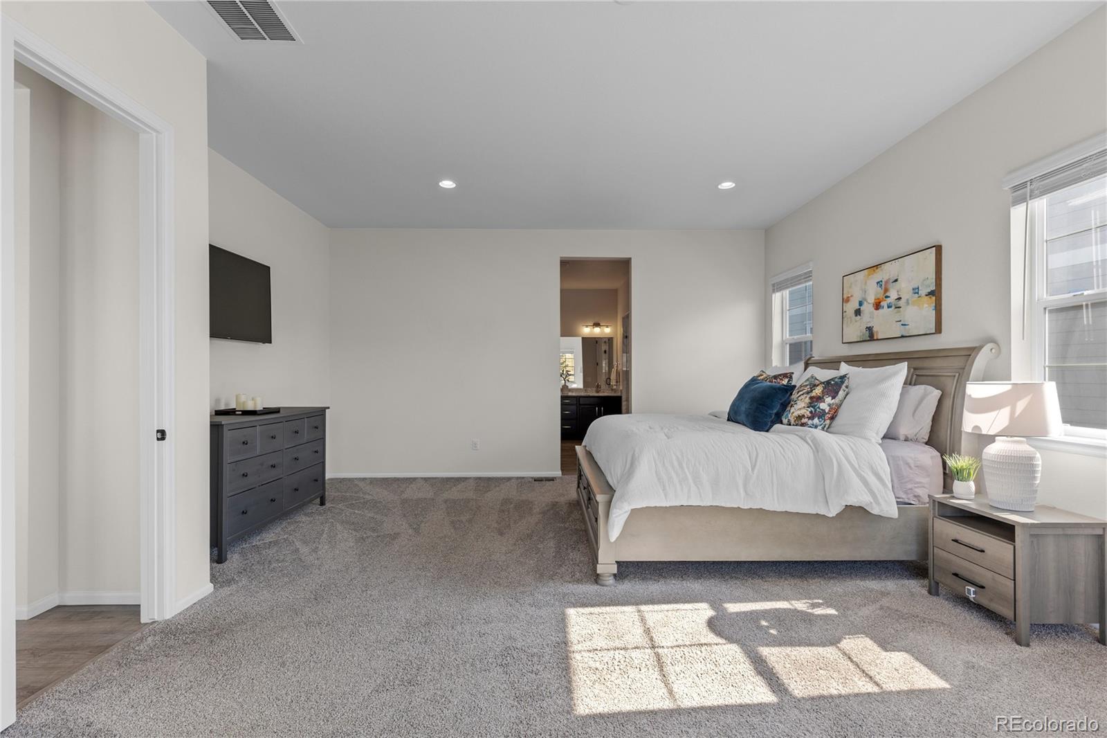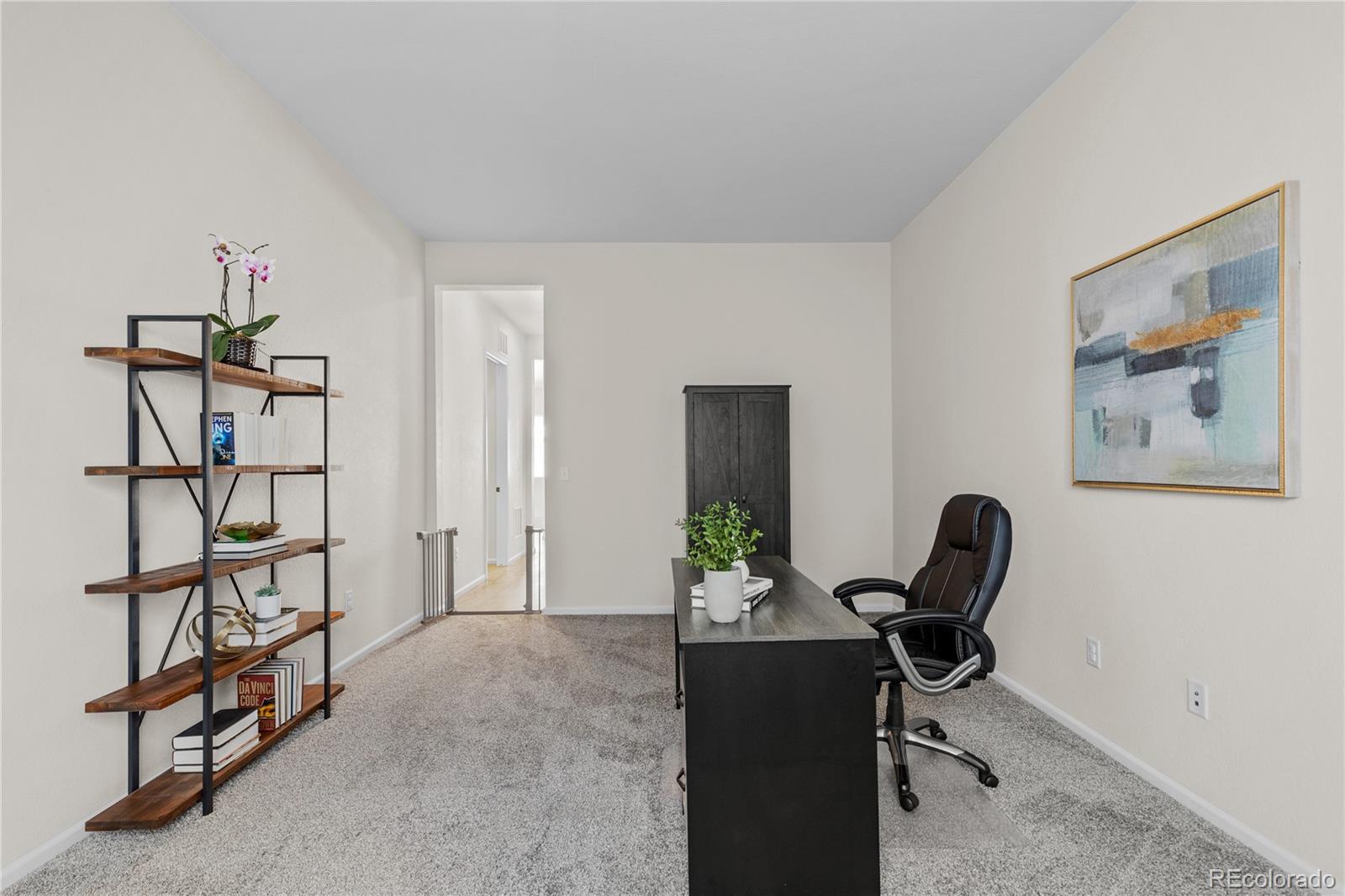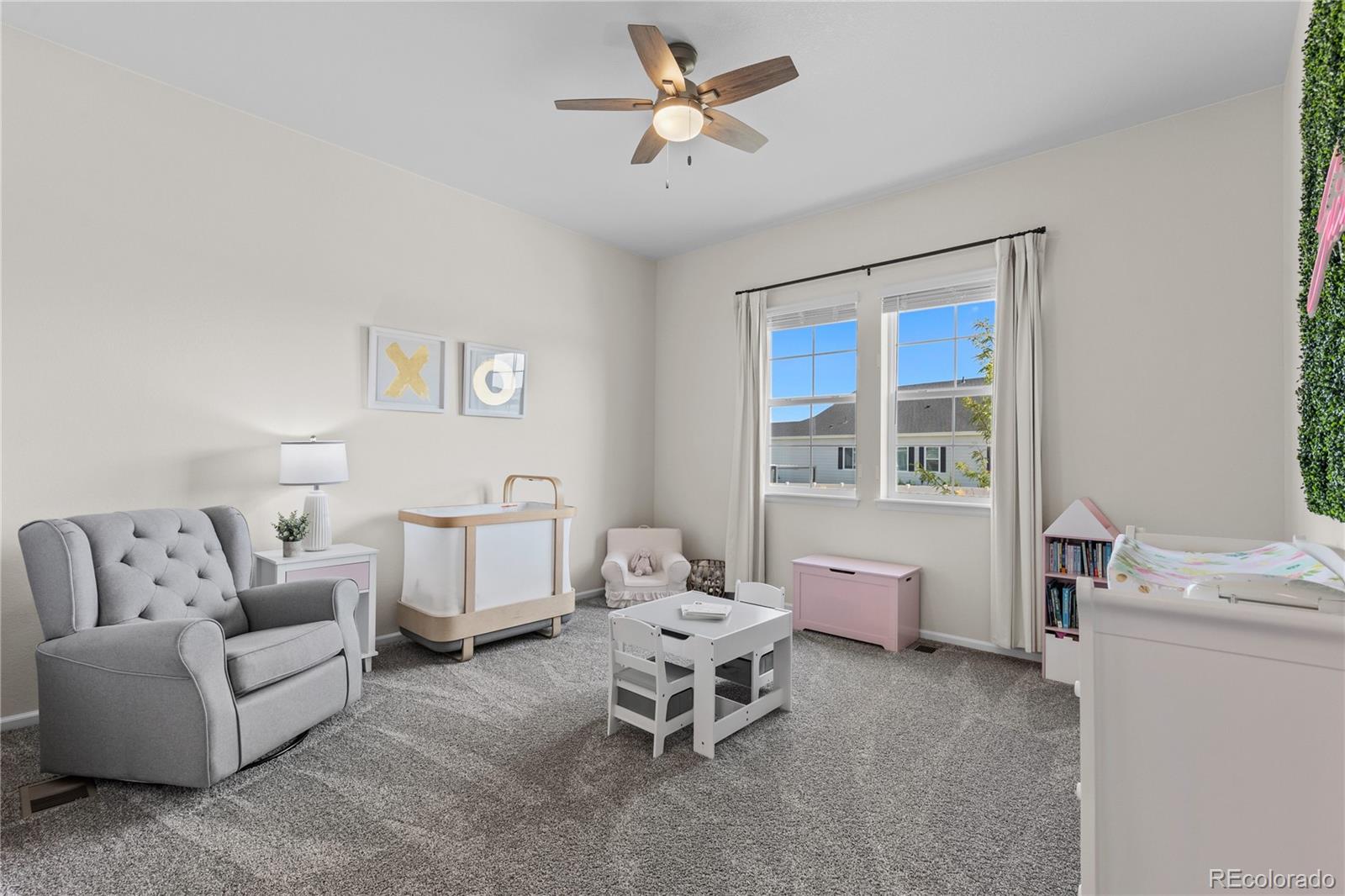 Set within the scenic enclave of Stone Creek Ranch, this 2022 ranch-style home captures sweeping views of Colorado's rolling hills and offers a sophisticated take on modern, main-floor living. Expansive windows bathe the main level in natural light, creating a warm and welcoming atmosphere equally suited for quiet mornings and effortless entertaining. The chef's kitchen is the true centerpiece, featuring an oversized island, timeless subway tile backsplash, stainless steel appliances, and a walk-in pantry. The space flows seamlessly into the dining area and great room, where a sleek fireplace provides a stylish focal point. Sliding glass doors invite indoor-outdoor living and frame the surrounding landscape. The primary suite serves as a serene retreat with peaceful views, a spa-inspired bathroom, and a generous walk-in closet. The finished lower level expands the home's versatility, offering a wet bar, media area, and flexible spaces ideal for guests, a home gym, or creative pursuits. Additional highlights include a three-car garage, solar panels, and thoughtful designer finishes throughout. Residents also enjoy access to outstanding community amenities, including a pool, clubhouse, parks, and trails. This exceptional home delivers modern comfort, functionality, and outstanding value--main-floor living at its finest.