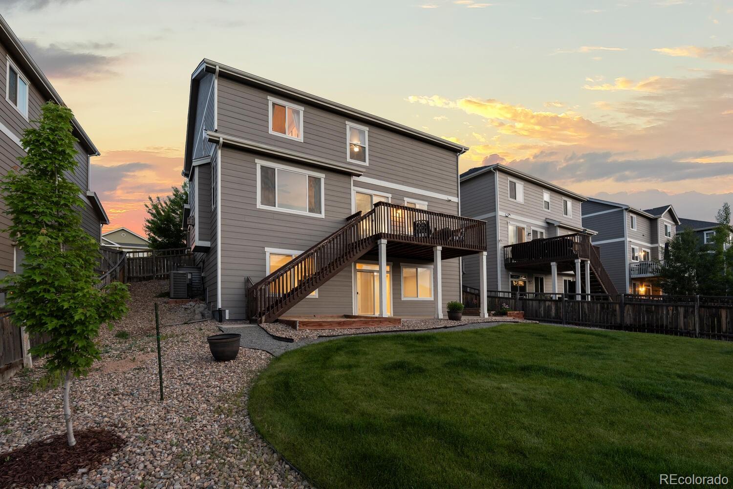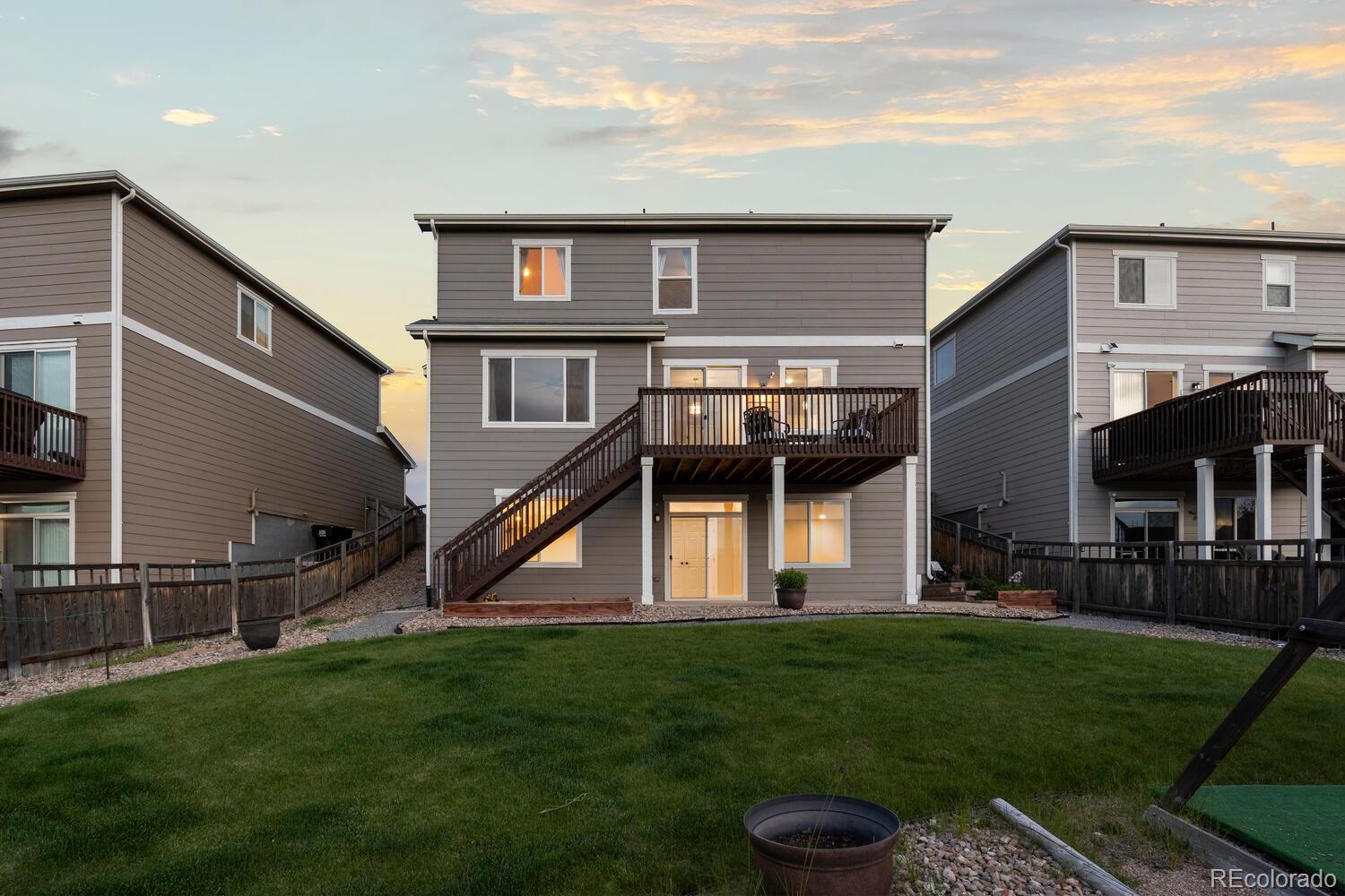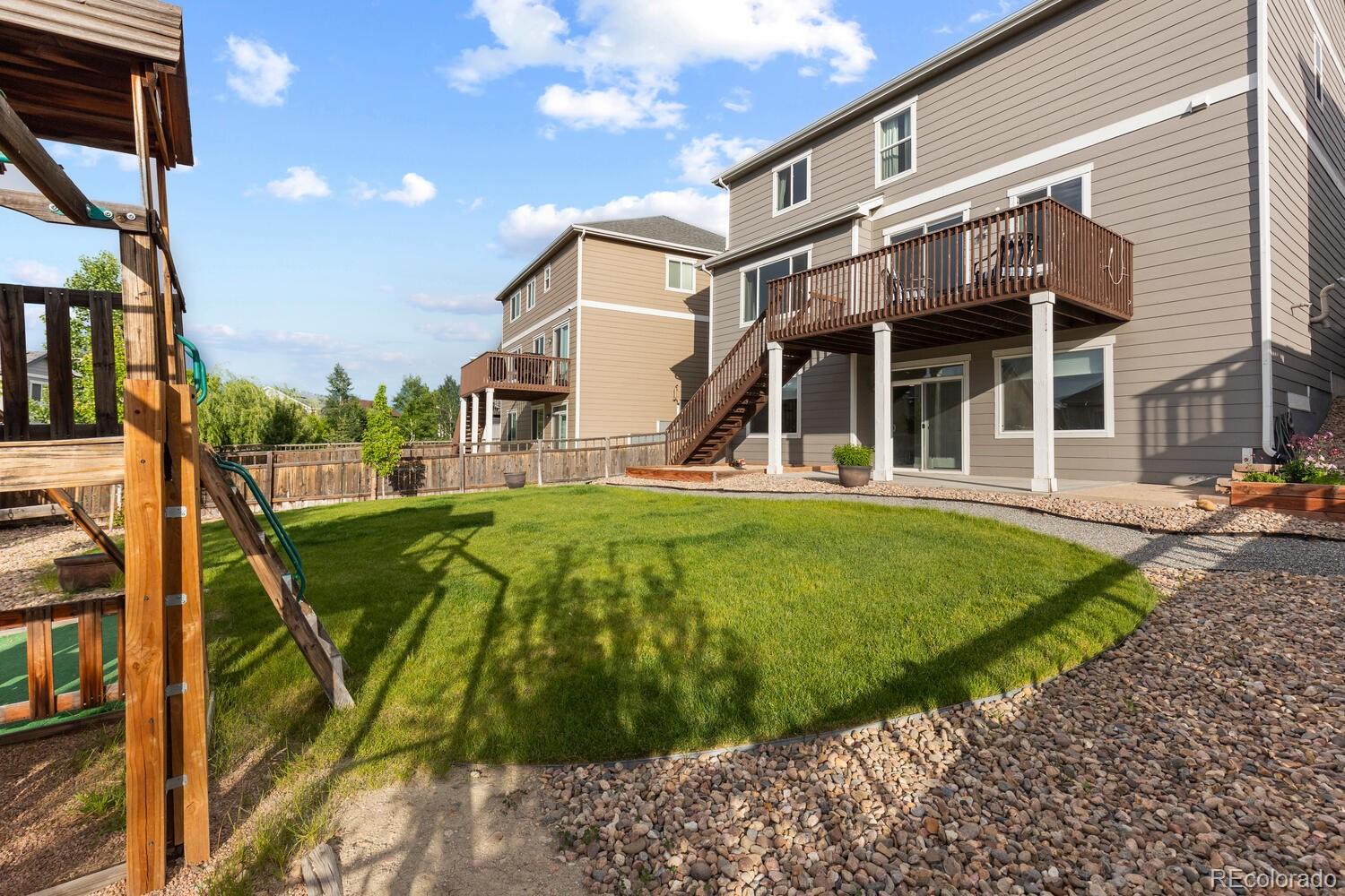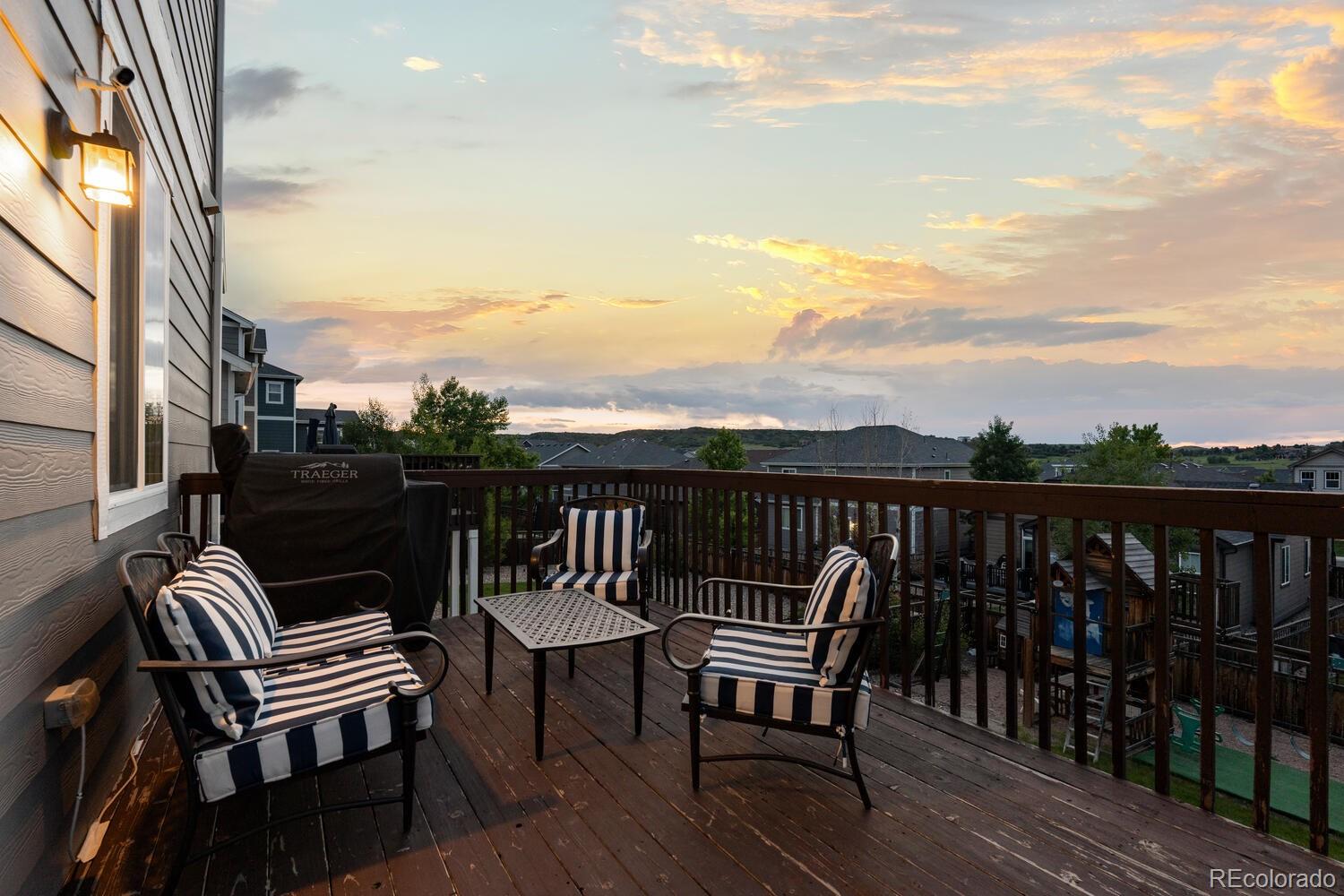 Immaculate 4 bedroom - 4 bathroom home with a finished basement located in the highly coveted Cobblestone Ranch Community! Nestled in between Parker and Castle Rock, this beautifully updated home offers the perfect blend of comfort, style and community living!Step inside to a bright, open concept floor plan flooded with natural light. The home boasts fresh, neutral interior paint, new carpet, and a newly finished walkout basement--ideal for a home theater, gym, guest suite, or extra living space. With a two year old air conditioning unit and fully paid-off solar panels, you'll enjoy energy efficiency and peace of mind for years to come. The spacious main floor and outdoor areas are perfect for both daily living and entertaining while four bedrooms all located on the upper level ensure enough room for everyone! The mature landscaping and beautifully maintained flower garden creates an inviting outdoor retreat and the flat usable yard is sure to be the perfect place to host parties, enjoy the evening sunsets or watch the children play. As a resident of Cobblestone Ranch, you'll enjoy a vibrant community atmosphere with access to fantastic amenities including a resort-style pool, multiple parks, walking trails, and open space for outdoor activities. This turnkey home is a rare opportunity to live in one of Douglas County's most desirable communities offering convenient access to downtown Castle Rock, Parker, shopping, dining, community amenities and award winning schools!