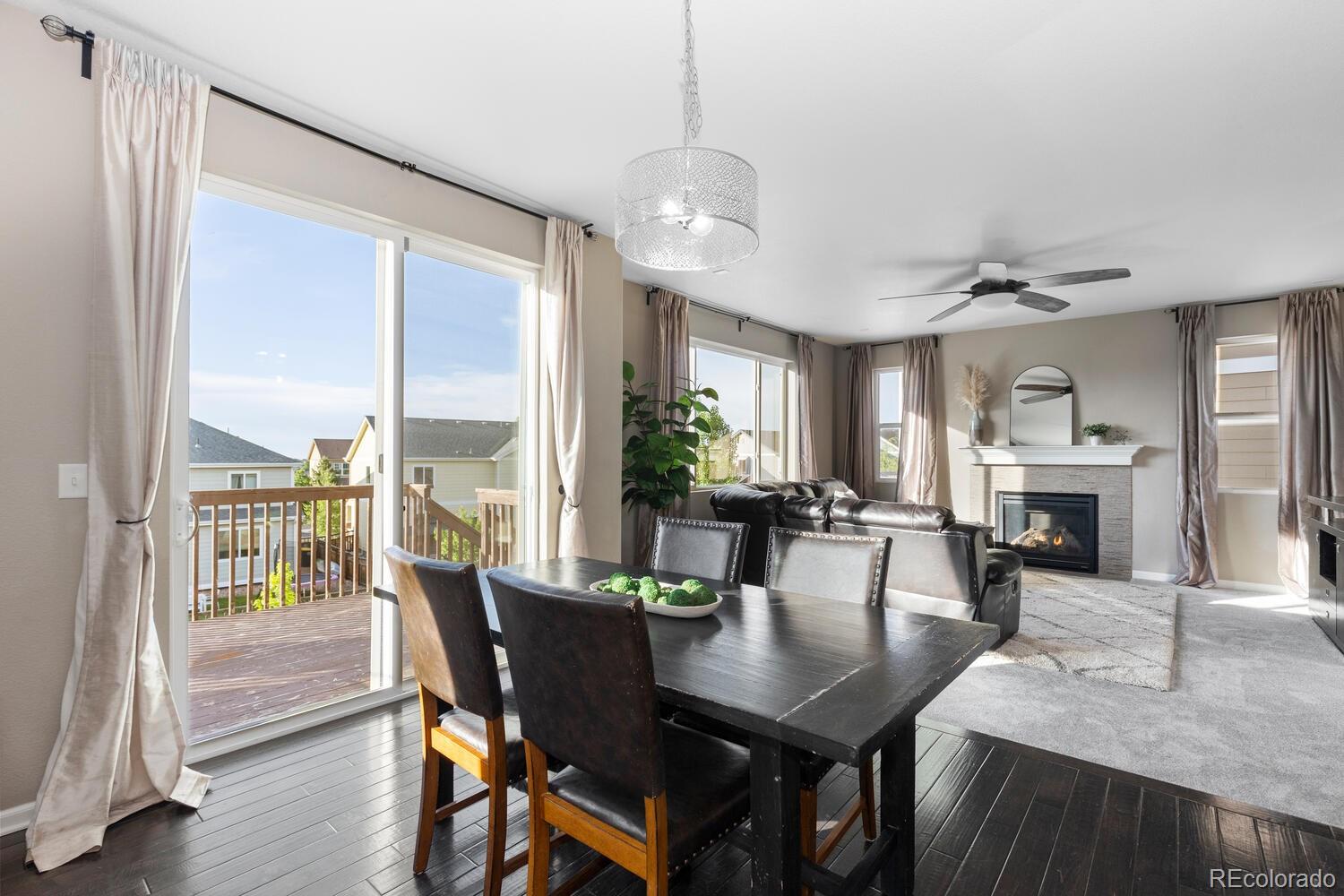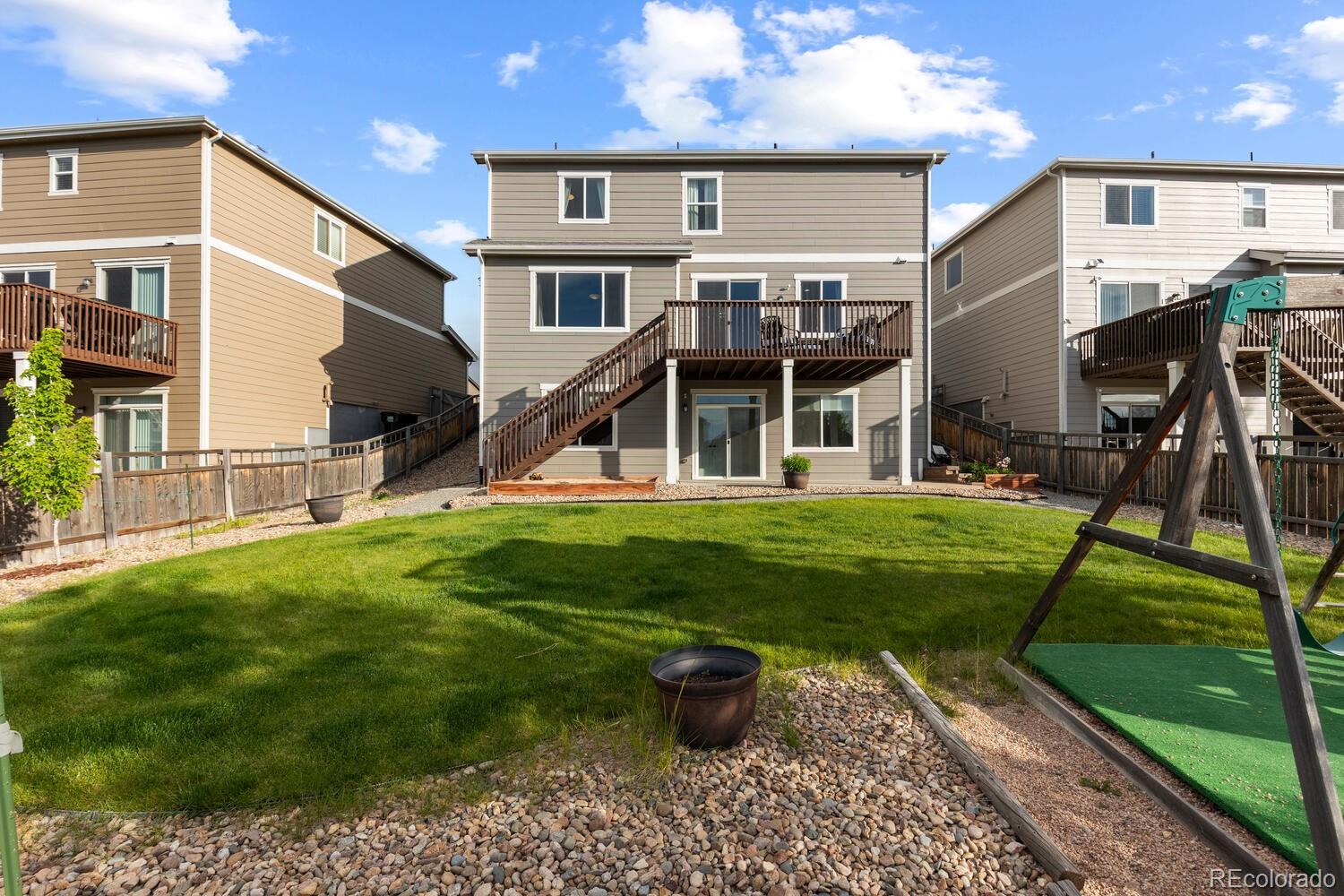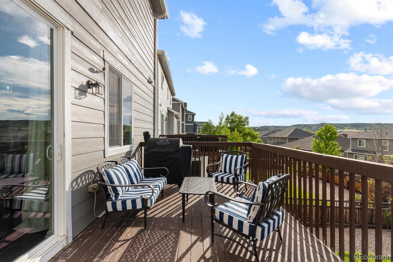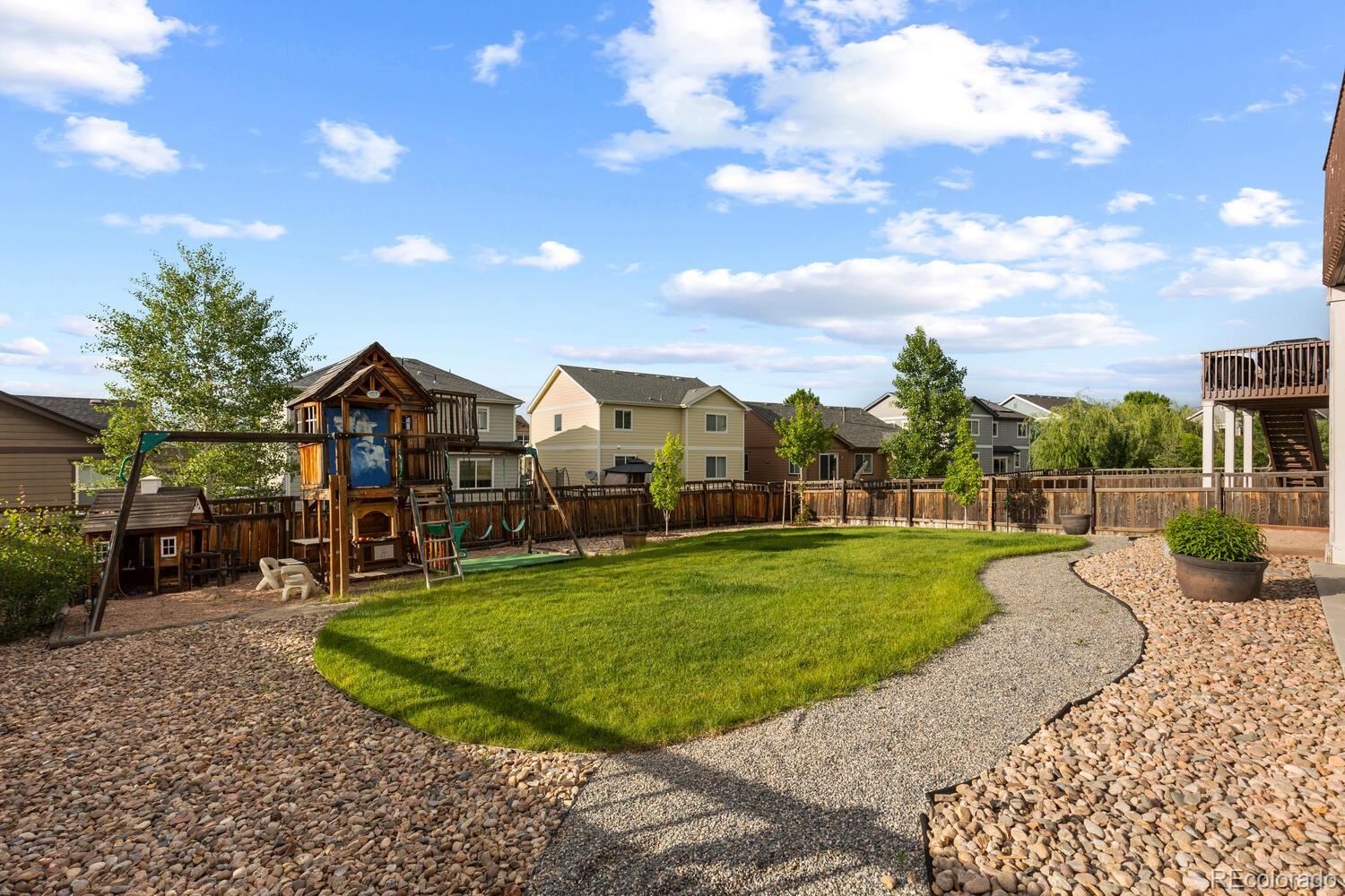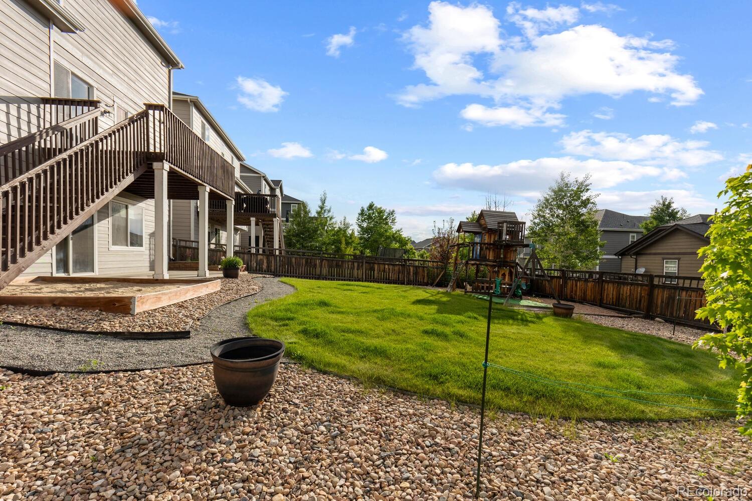 Immaculate 4 bedroom - 4 bathroom home with a finished basement located in the highly coveted Cobblestone Ranch Community! Nestled in between Parker and Castle Rock, this beautifully updated home offers the perfect blend of comfort, style and community living!Step inside to a bright, open concept floor plan flooded with natural light. The home boasts fresh, neutral interior paint, new carpet, and a newly finished walkout basement--ideal for a home theater, gym, guest suite, or extra living space. With a two year old air conditioning unit and fully paid-off solar panels, you'll enjoy energy efficiency and peace of mind for years to come. The spacious main floor and outdoor areas are perfect for both daily living and entertaining while four bedrooms all located on the upper level ensure enough room for everyone! The mature landscaping and beautifully maintained flower garden creates an inviting outdoor retreat and the flat usable yard is sure to be the perfect place to host parties, enjoy the evening sunsets or watch the children play. As a resident of Cobblestone Ranch, you'll enjoy a vibrant community atmosphere with access to fantastic amenities including a resort-style pool, multiple parks, walking trails, and open space for outdoor activities. This turnkey home is a rare opportunity to live in one of Douglas County's most desirable communities offering convenient access to downtown Castle Rock, Parker, shopping, dining, community amenities and award winning schools!