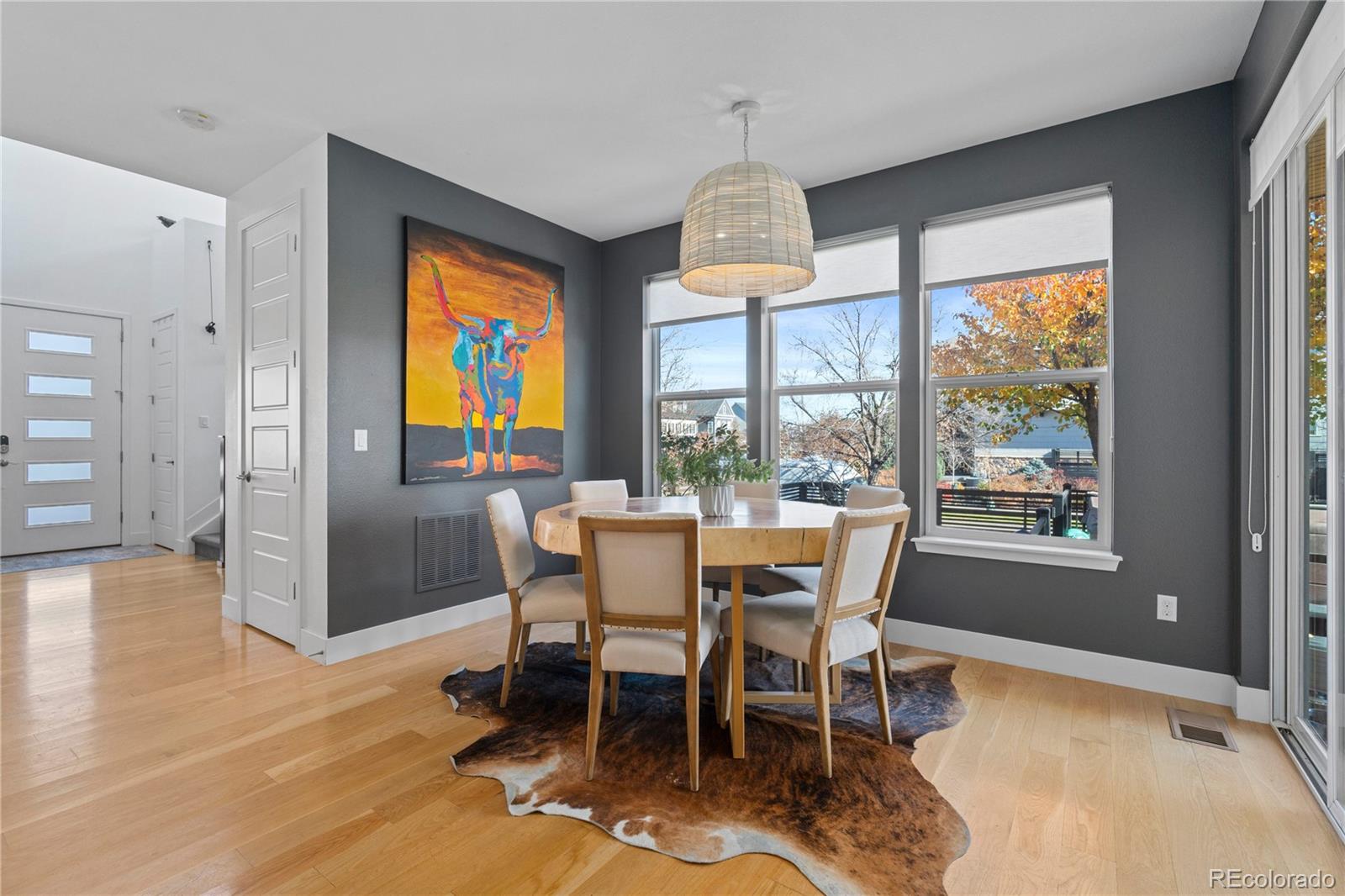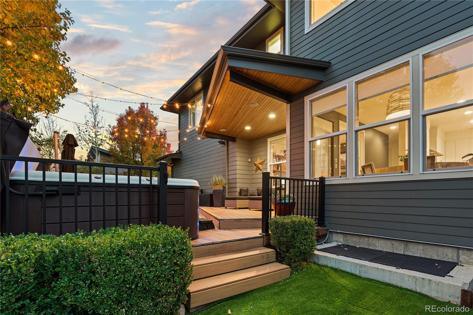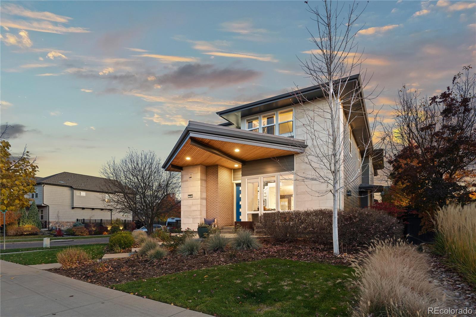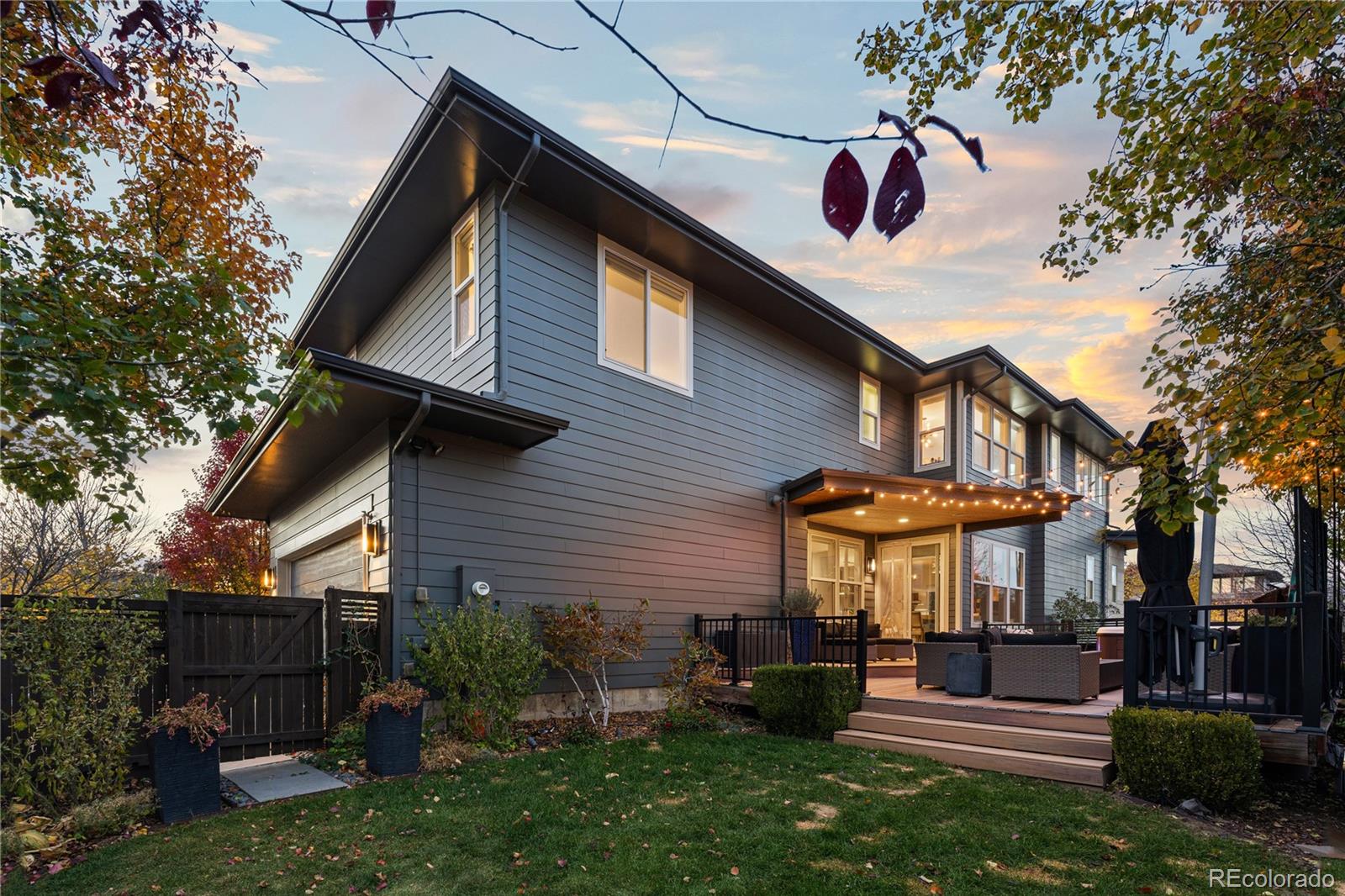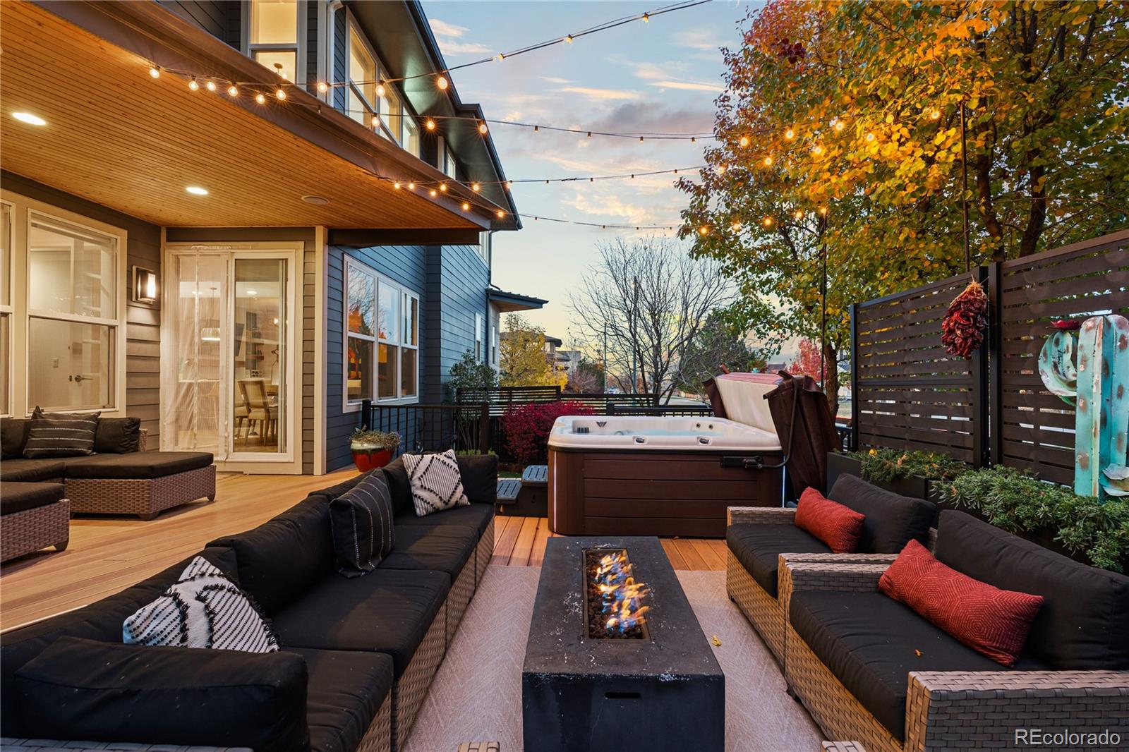 Outdoor spaces invite daily use. A covered front patio with a cantilevered overhang is perfect for coffee and neighbor hellos. In the back, an extended patio sits behind mature trees, layered plantings, a contemporary black slatted privacy fence, and a tall privacy wall for added seclusion. Sprinklers in the front and rear simplify upkeep, and the attached two-car garage provides easy parking and storage. Experience an elevated Central Park lifestyle with neighborhood parks, a community pool, and quick access to trails, local dining, retail, and more.